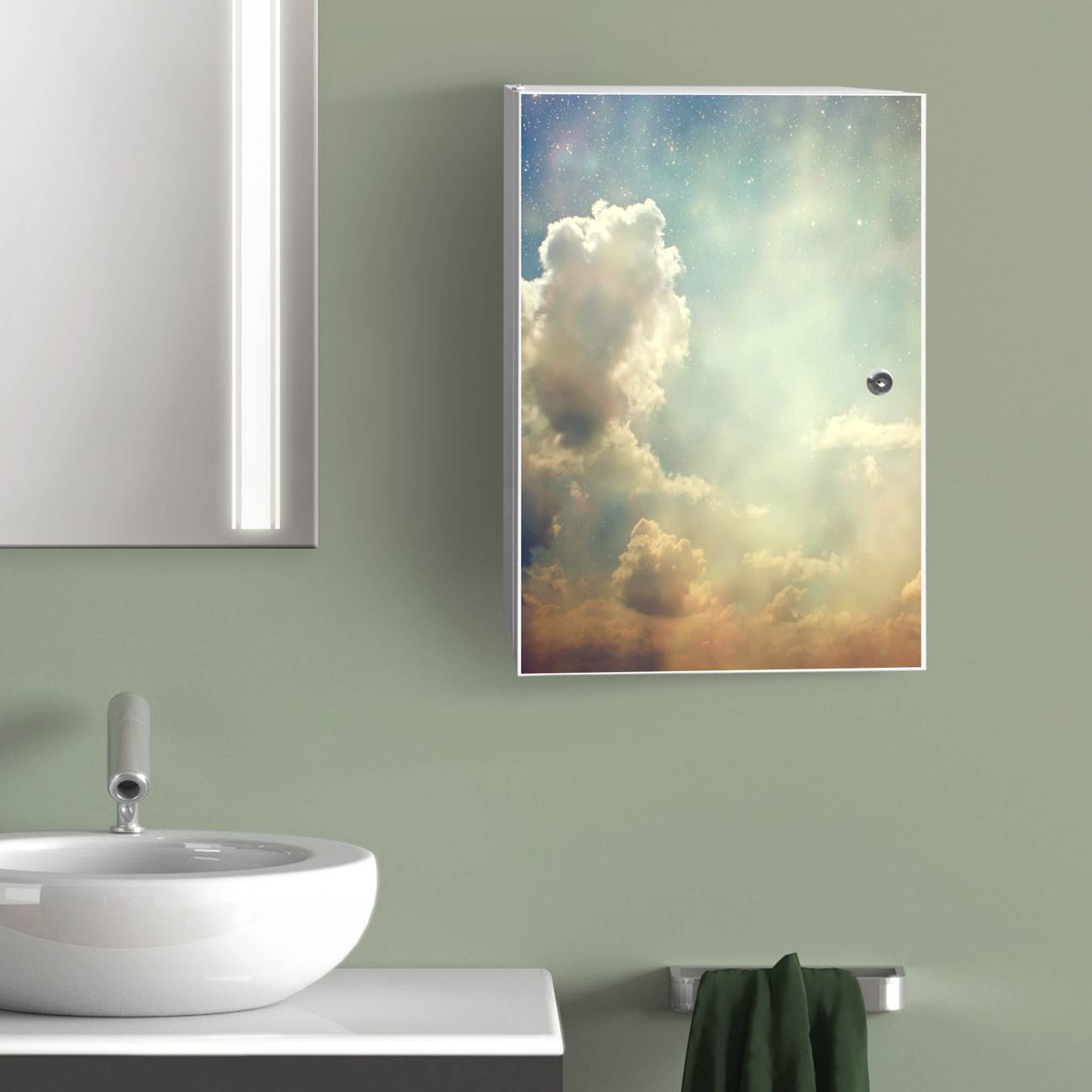 Medizinschrank Stahl Motiv Himmel Vintage