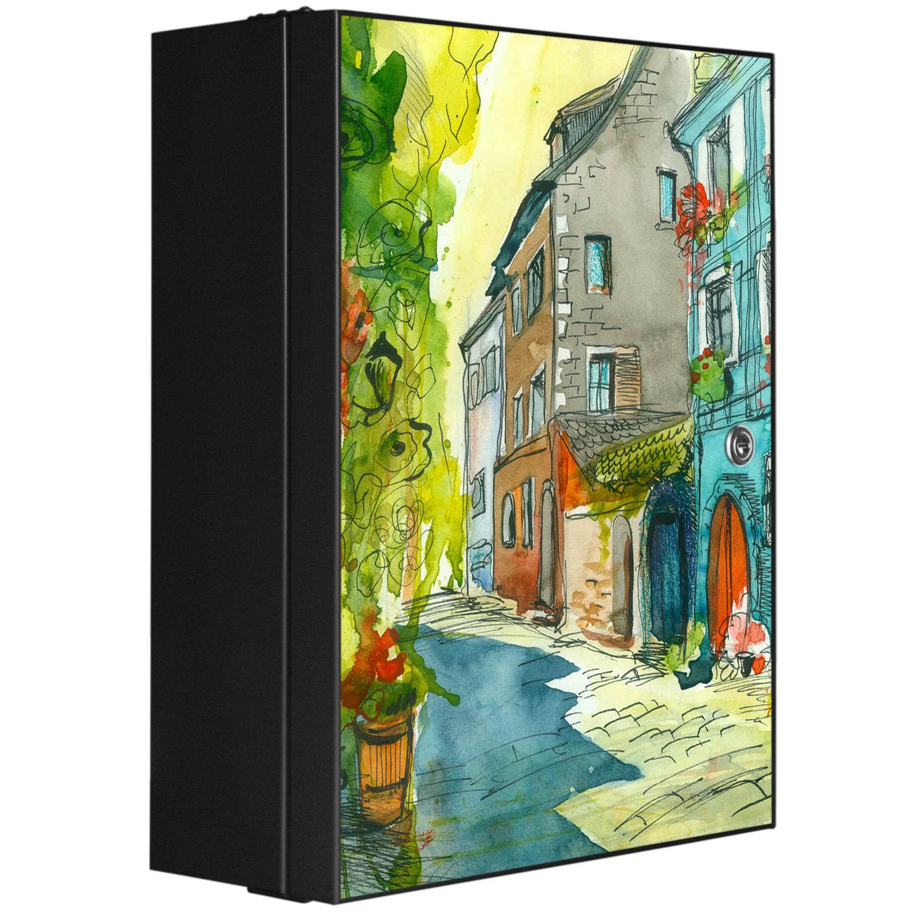 Medizinschrank Stahl Motiv Historischer Stadtkern