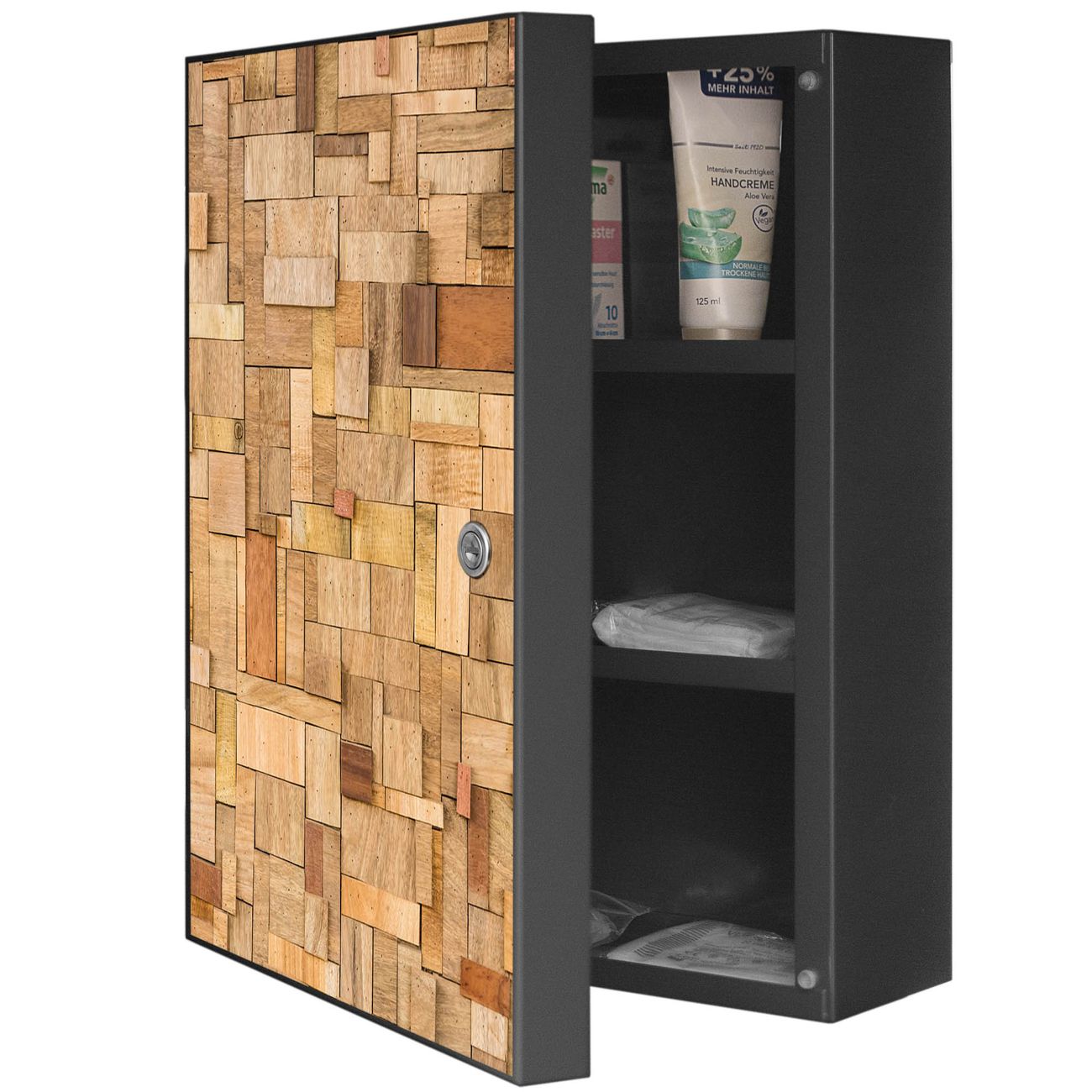 Medizinschrank Stahl Motiv Hölzernes Flickwerk