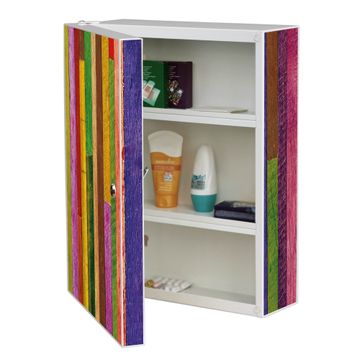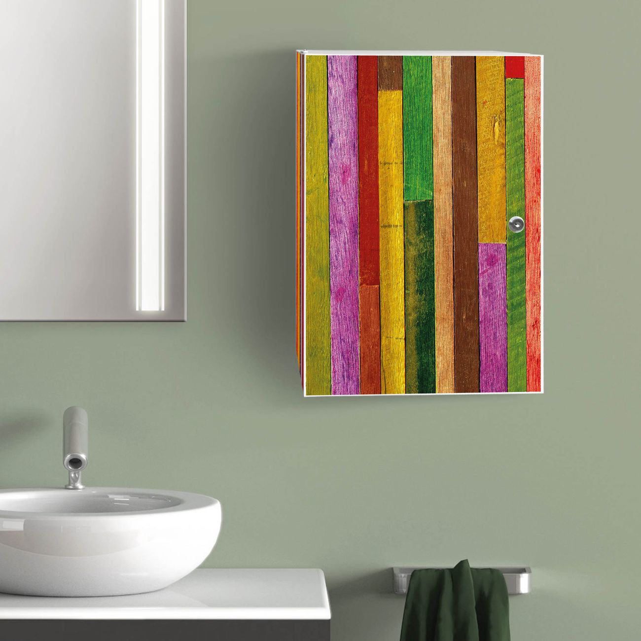 Medizinschrank Stahl Motiv Holz Collage Bunt