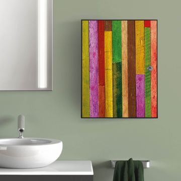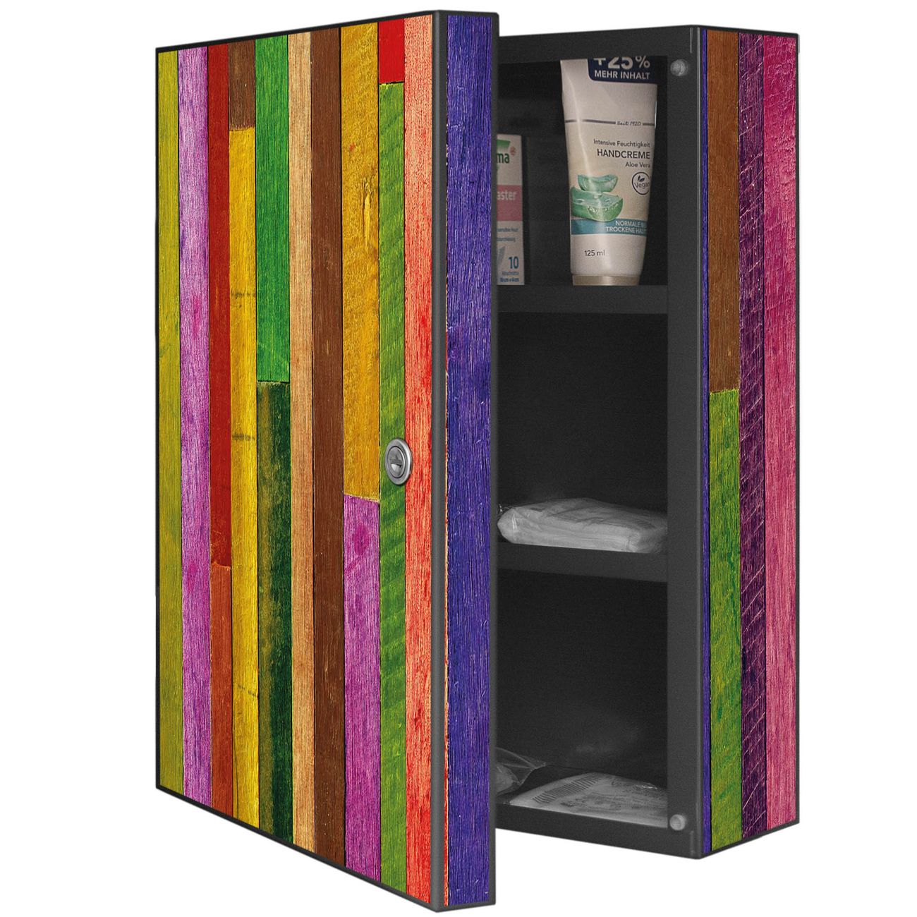 Medizinschrank Stahl Motiv Holz Collage Bunt