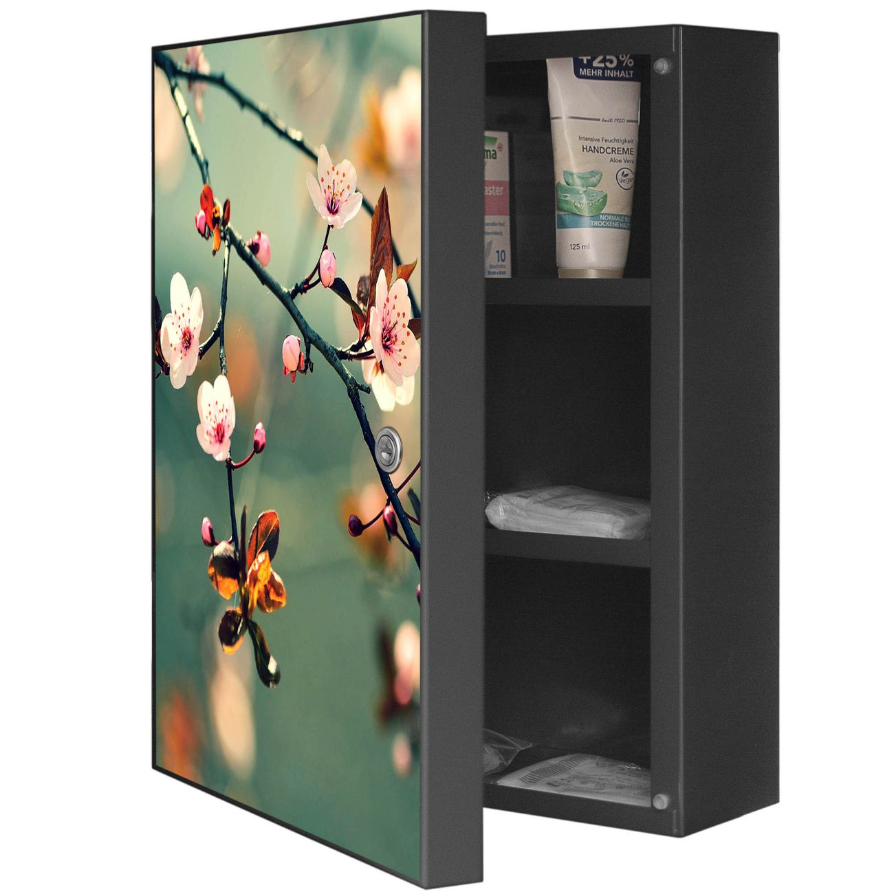 Der Medizinschrank ist gesamt 35x46x15cm groß und wiegt ca. 3900g. Der Türanschlag ist links und kann nicht verändert werden, die Fronttür öffnet ca. 115°. Die Folierung befindet sich auf der Front. Das Gehäuse ist zeitlos anthrazit und aus Stahl gefertigt. Die innenliegenden Fächer haben verschiedene Größen für unterschiedliche Aufbewahrungsmöglichkeiten, in der Innentür können ebenfalls Dinge abgelegt werden. Befestigt wird der Medizinschrank an 4 Stellen auf der Rückseite, Sie erhalten 3 Schlüssel.