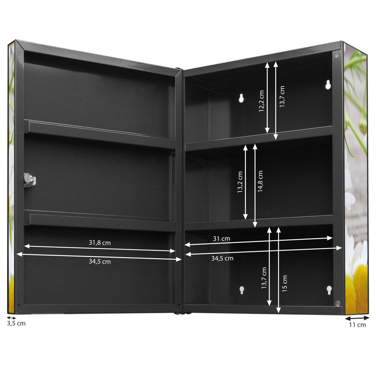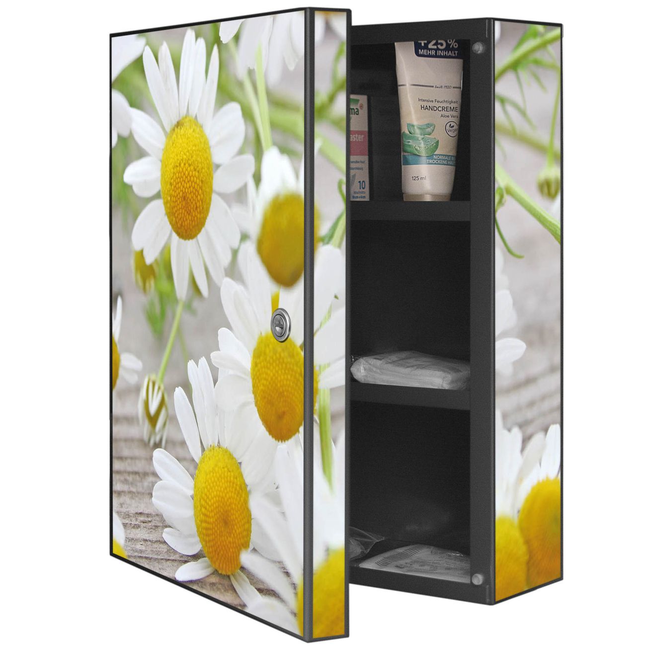 Medizinschrank Stahl Motiv Kamillenblüten