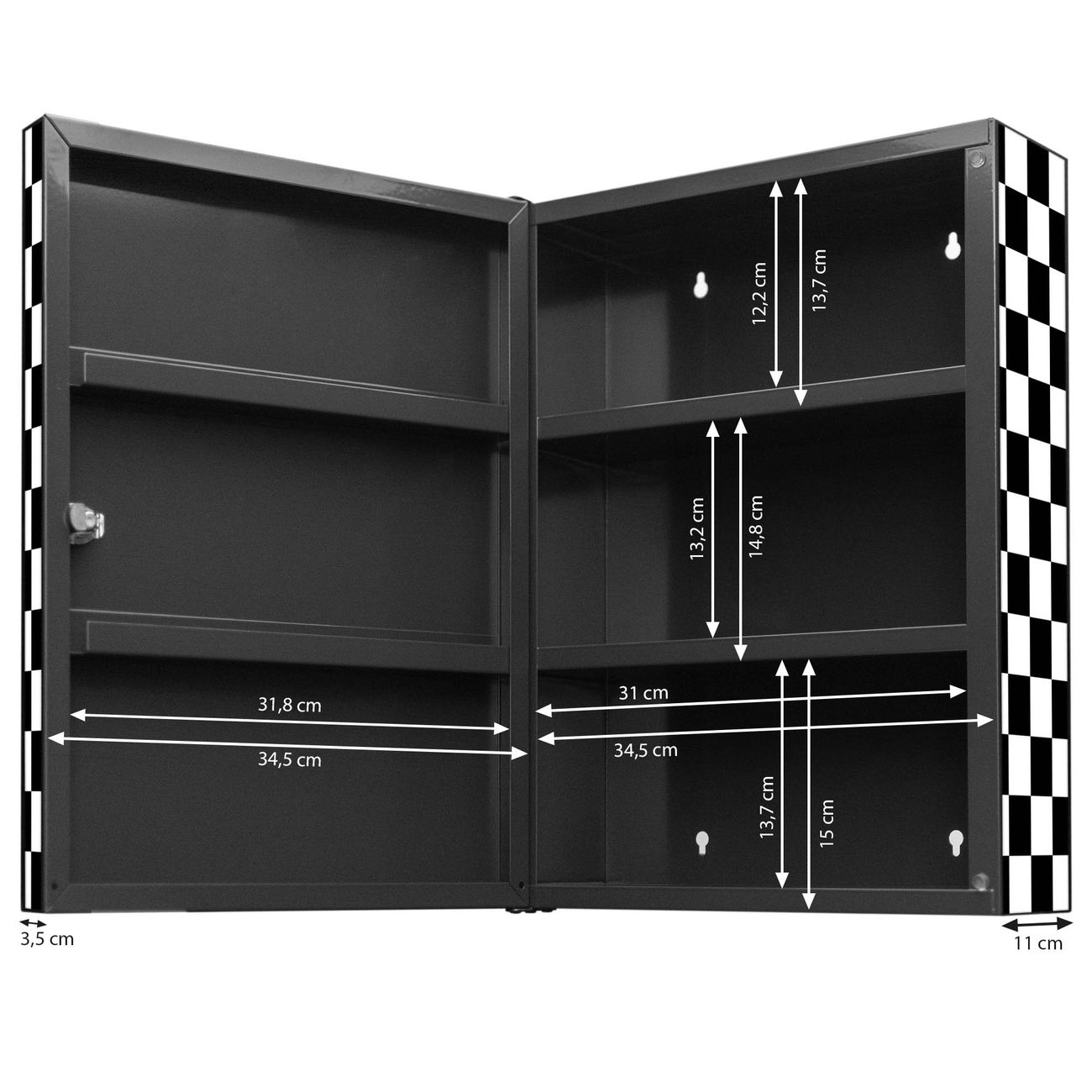 Medizinschrank Stahl Motiv Karo Schwarz