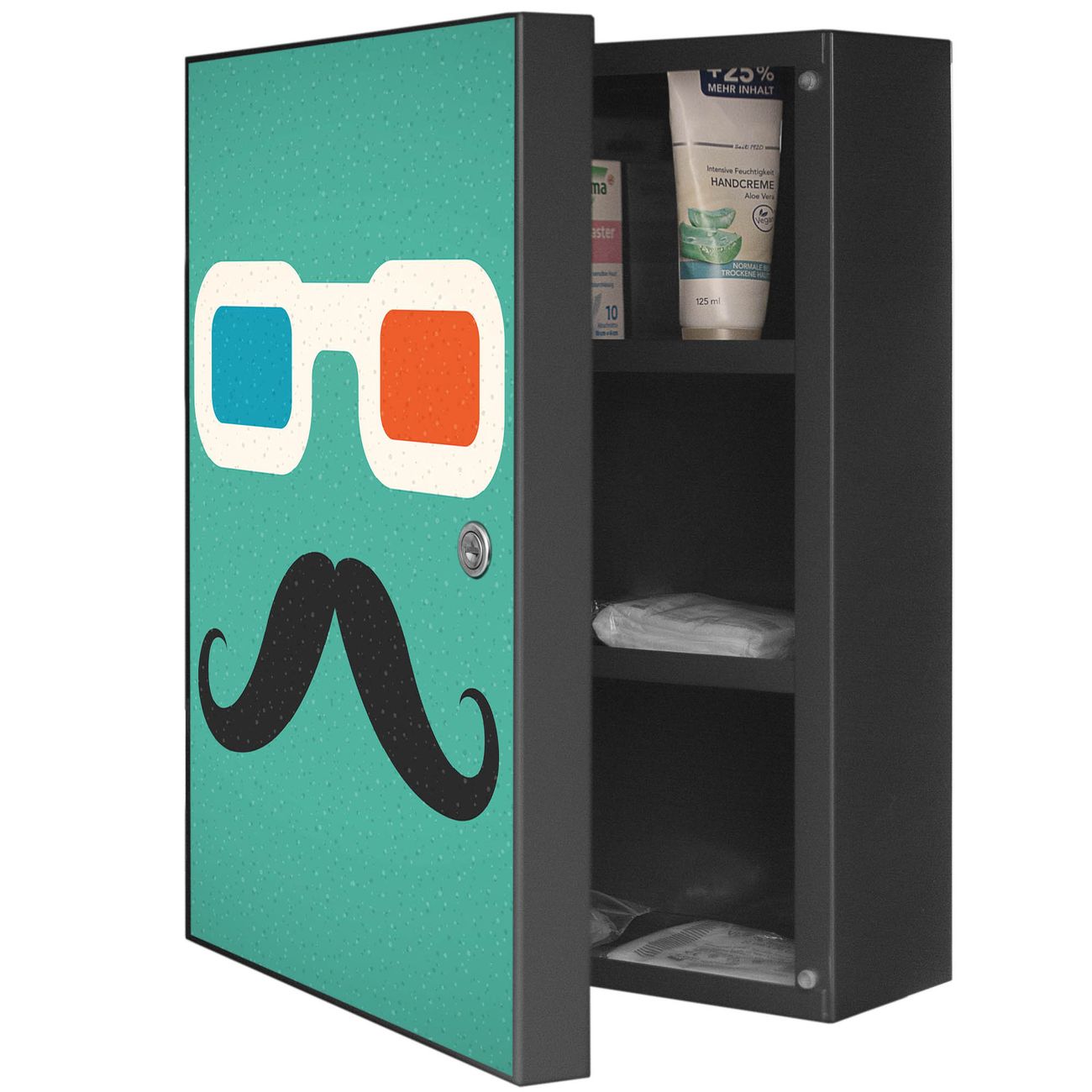 Medizinschrank Stahl Motiv Kinobrille