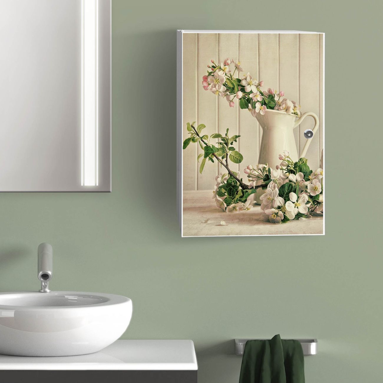 Medizinschrank Stahl Motiv Kirschzweige