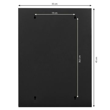 Der Medizinschrank ist gesamt 35x46x15cm groß und wiegt ca. 3900g. Der Türanschlag ist links und kann nicht verändert werden, die Fronttür öffnet ca. 115°. Die Folierung befindet sich auf der Front. Das Gehäuse ist zeitlos anthrazit und aus Stahl gefertigt. Die innenliegenden Fächer haben verschiedene Größen für unterschiedliche Aufbewahrungsmöglichkeiten, in der Innentür können ebenfalls Dinge abgelegt werden. Befestigt wird der Medizinschrank an 4 Stellen auf der Rückseite, Sie erhalten 3 Schlüssel.