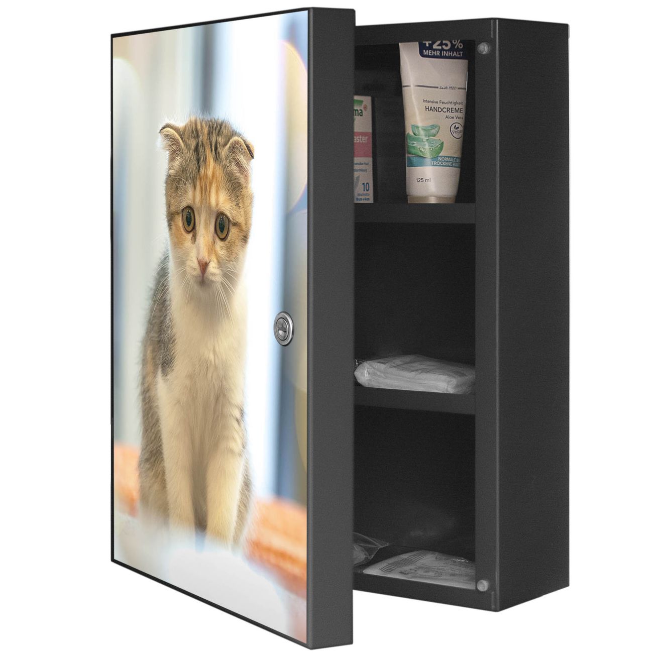 Medizinschrank Stahl Motiv Kleine Katze