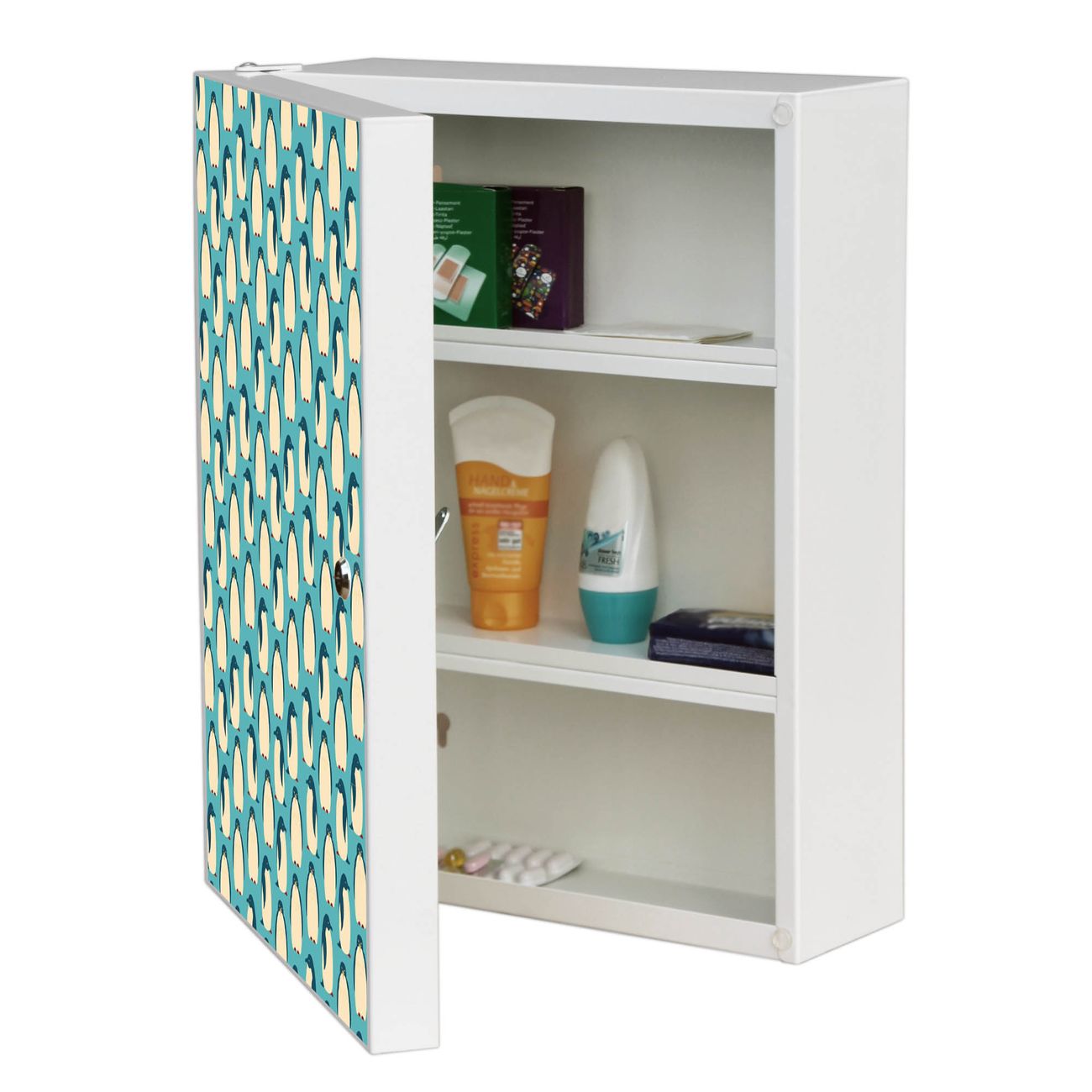 Medizinschrank Stahl Motiv Königspinguine