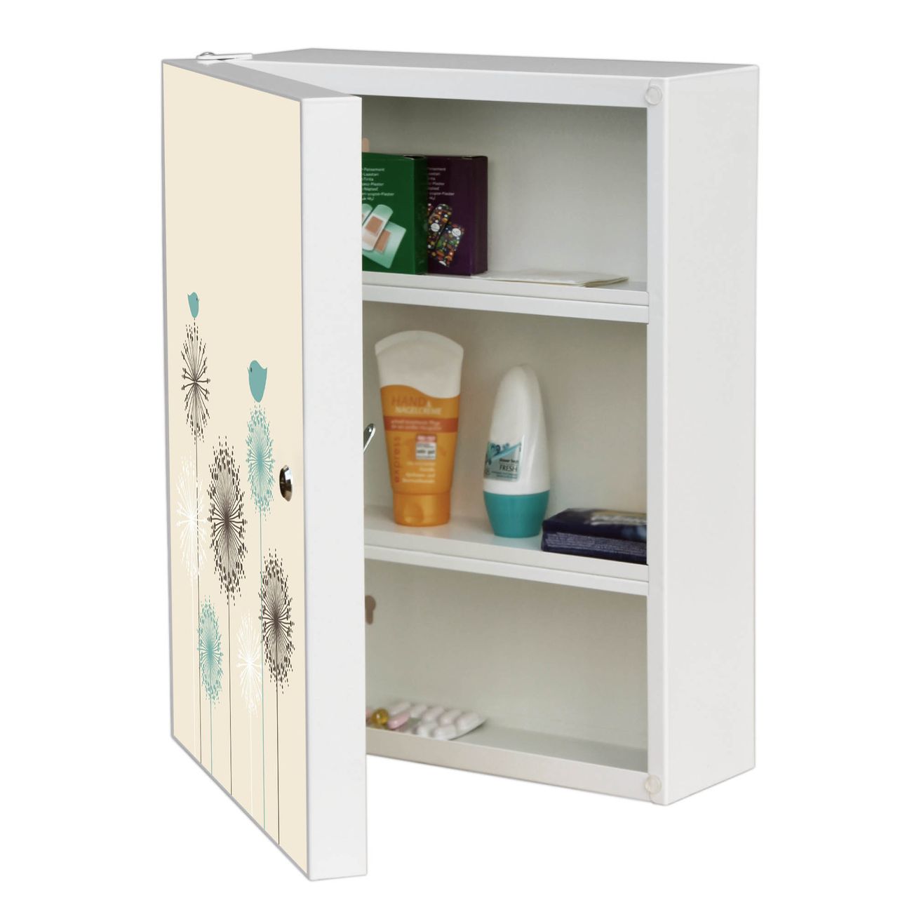 Medizinschrank Stahl Motiv Kugelfontänen
