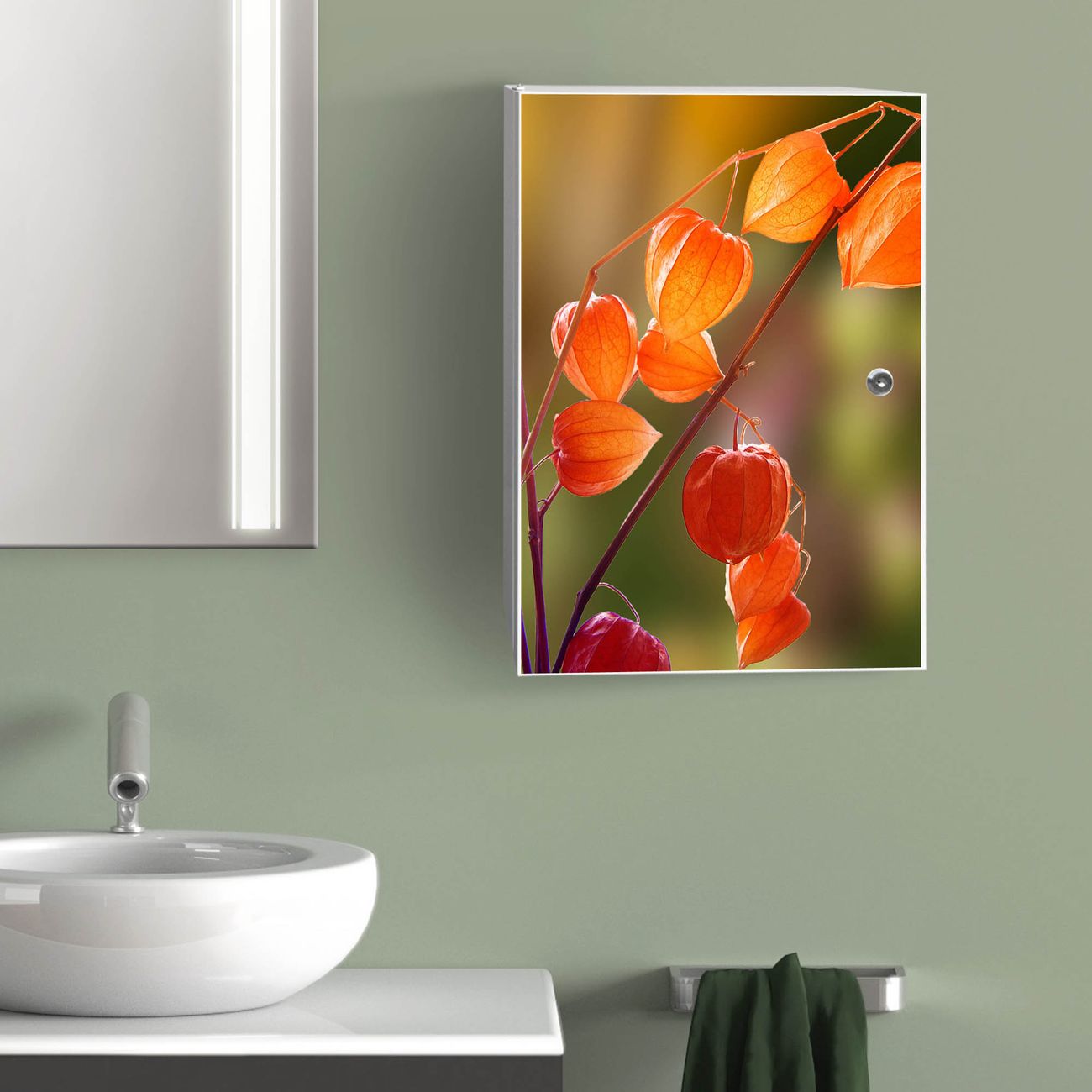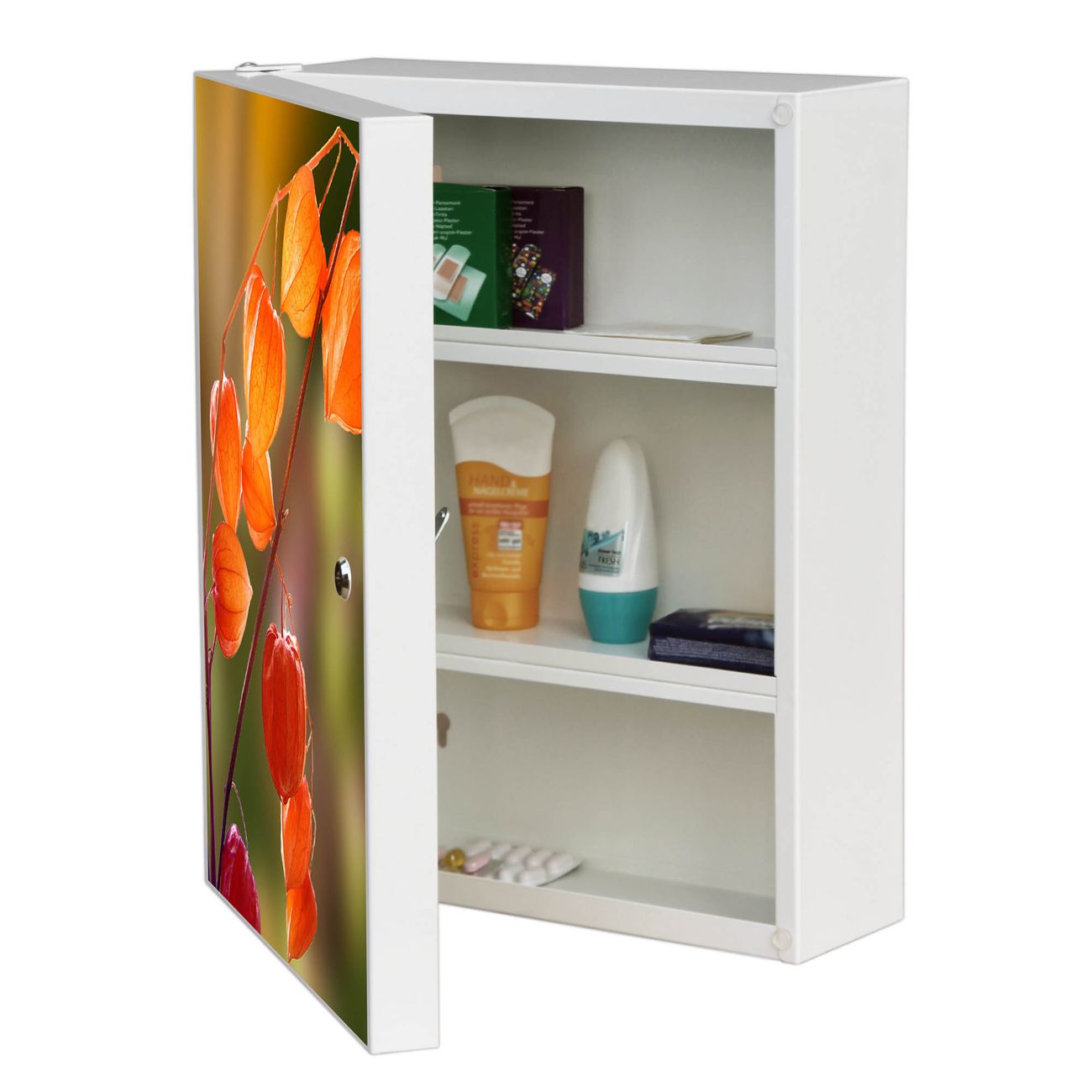 Medizinschrank Stahl Motiv Lampionblume