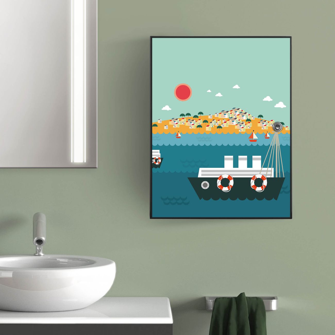 Medizinschrank Stahl Motiv Land in Sicht