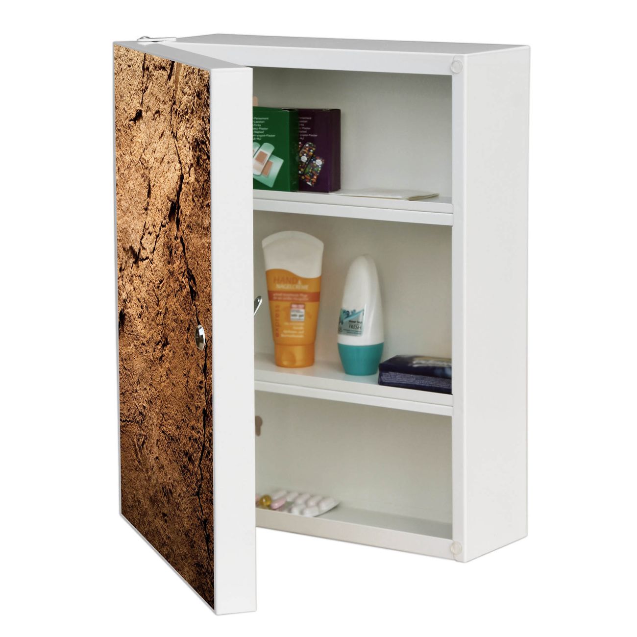 Medizinschrank Stahl Motiv Lehmboden