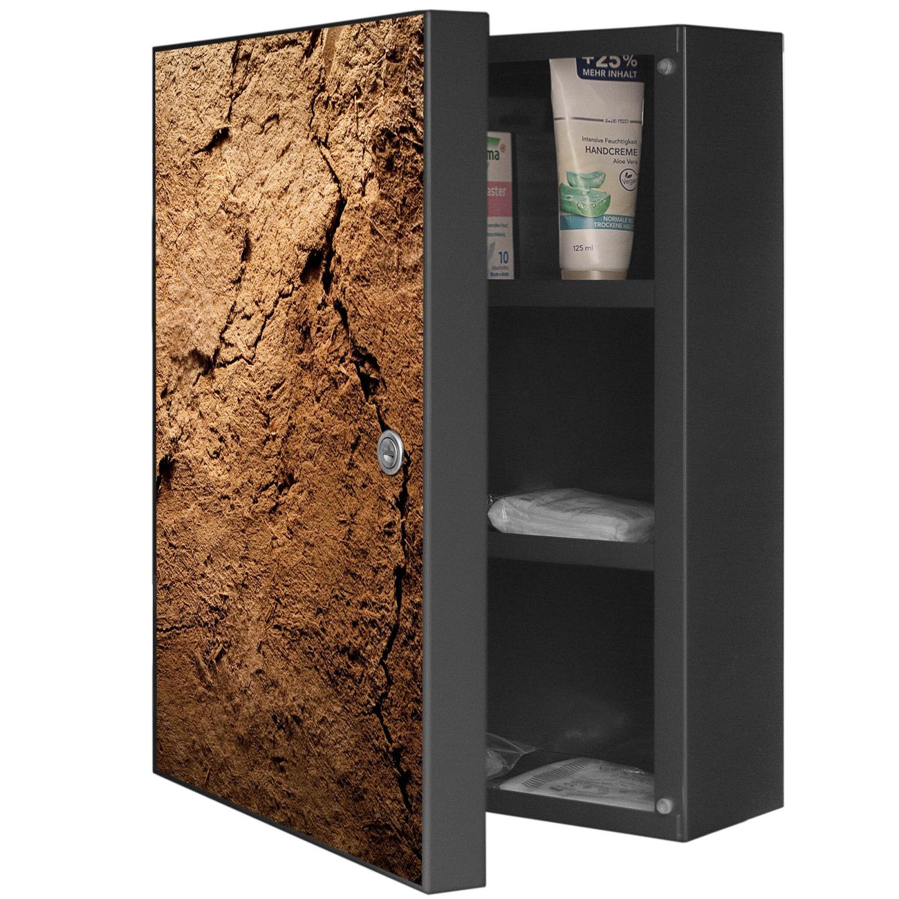 Medizinschrank Stahl Motiv Lehmboden