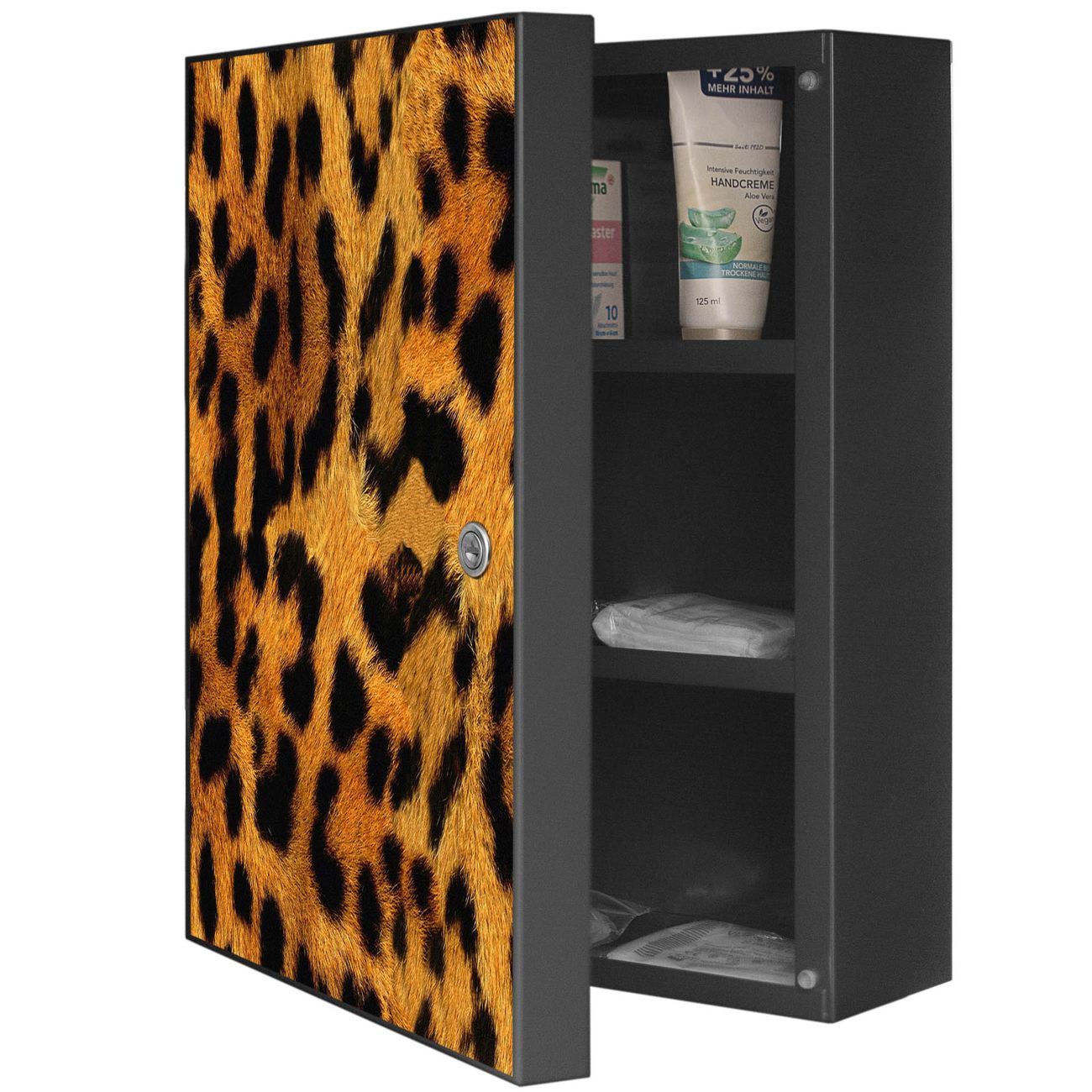 Der Medizinschrank ist gesamt 35x46x15cm groß und wiegt ca. 3900g. Der Türanschlag ist links und kann nicht verändert werden, die Fronttür öffnet ca. 115°. Die Folierung befindet sich auf der Front. Das Gehäuse ist zeitlos anthrazit und aus Stahl gefertigt. Die innenliegenden Fächer haben verschiedene Größen für unterschiedliche Aufbewahrungsmöglichkeiten, in der Innentür können ebenfalls Dinge abgelegt werden. Befestigt wird der Medizinschrank an 4 Stellen auf der Rückseite, Sie erhalten 3 Schlüssel.