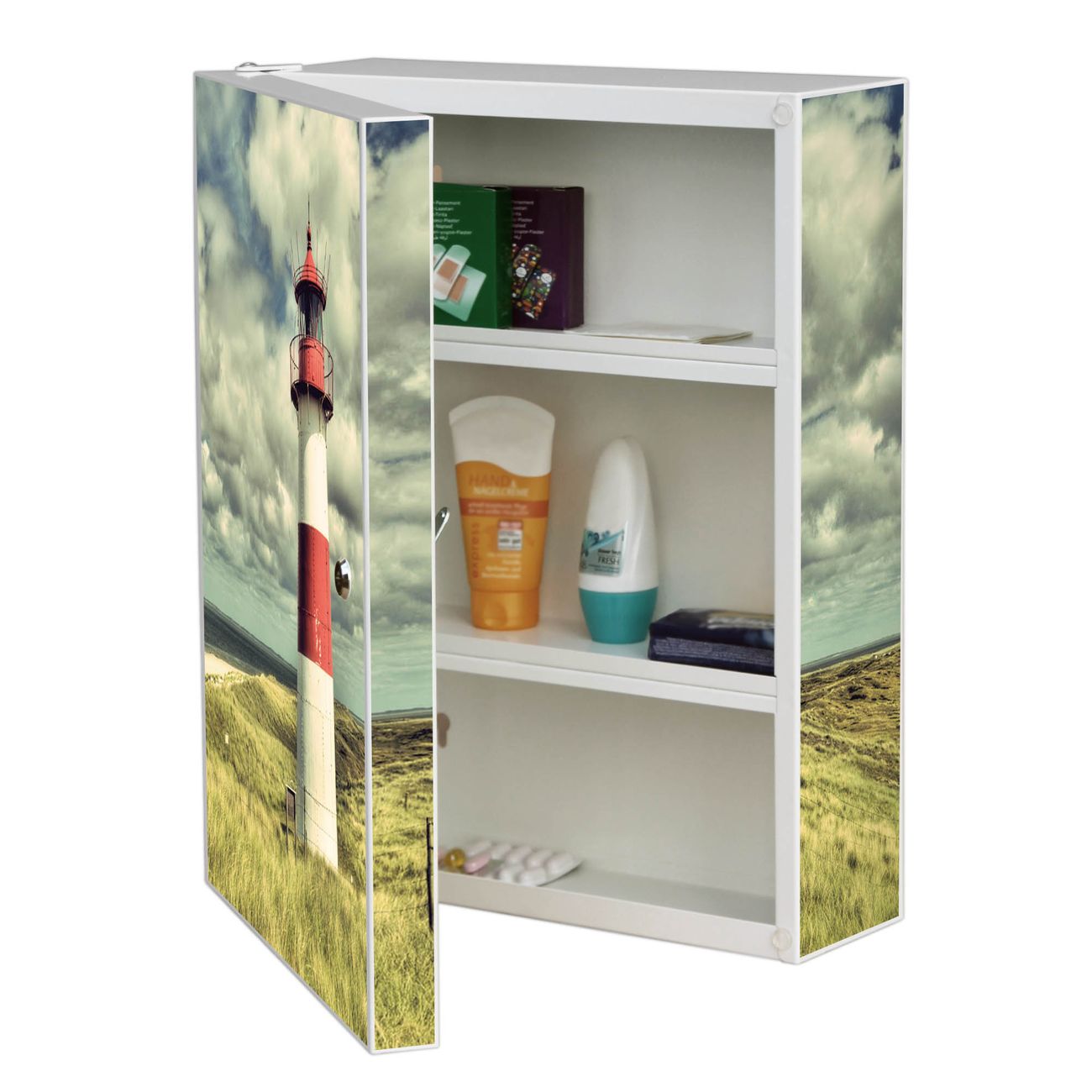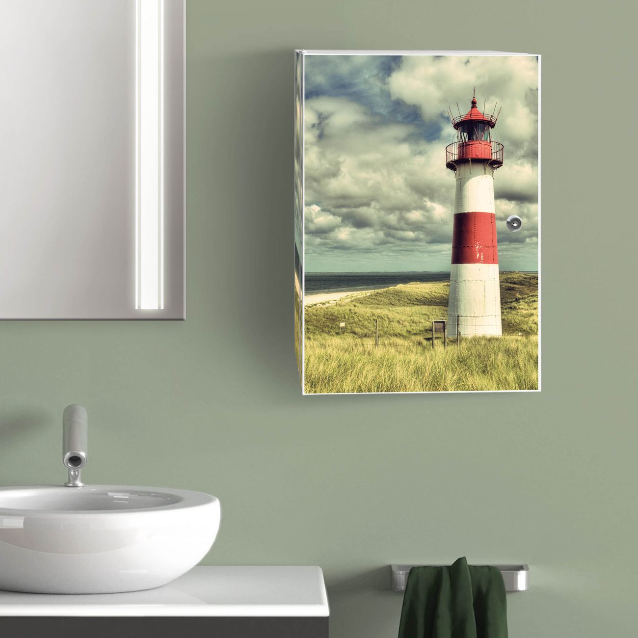 Medizinschrank Stahl Motiv Leuchtturm Sylt