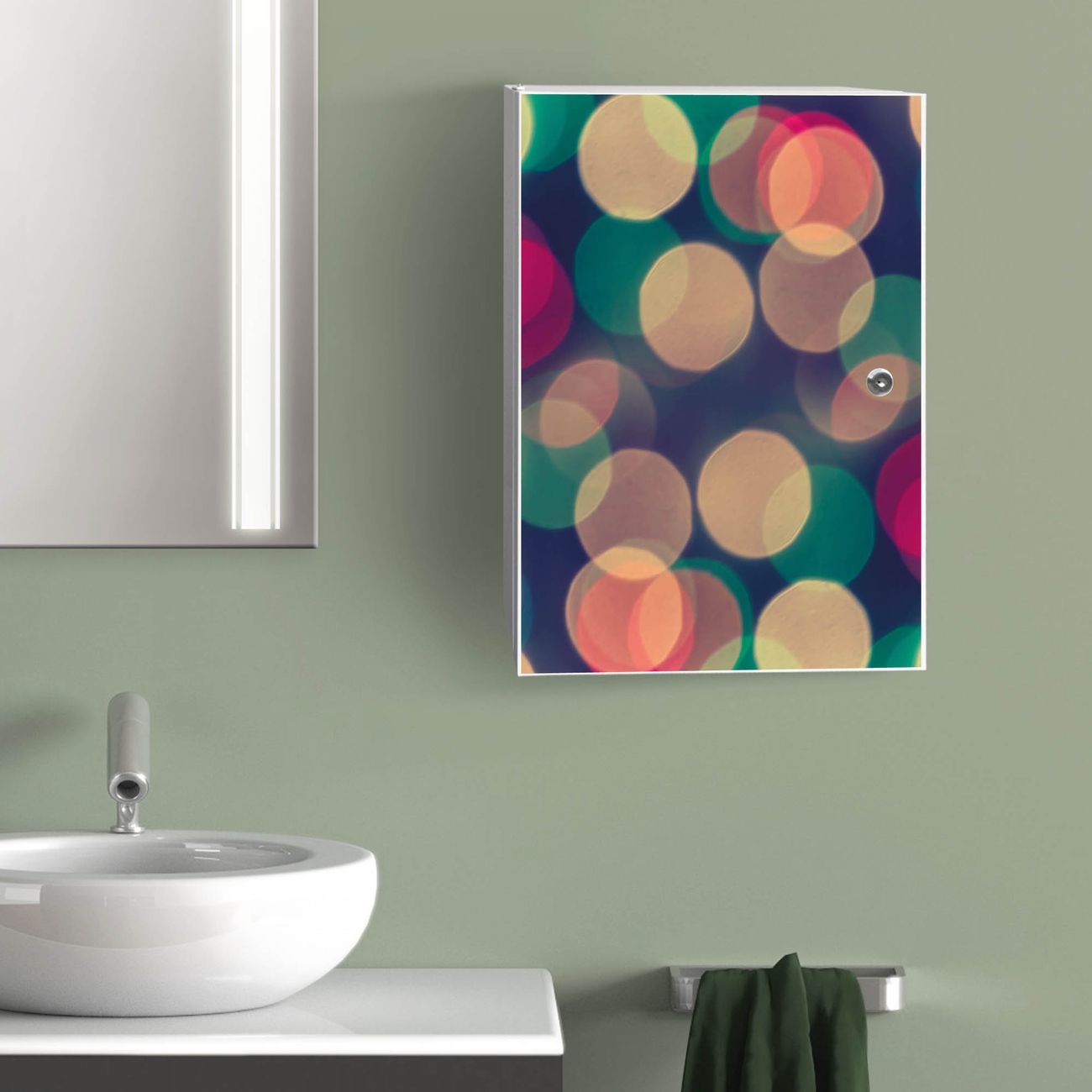 Medizinschrank Stahl Motiv Lichtpunkte Weiß Grün Rot