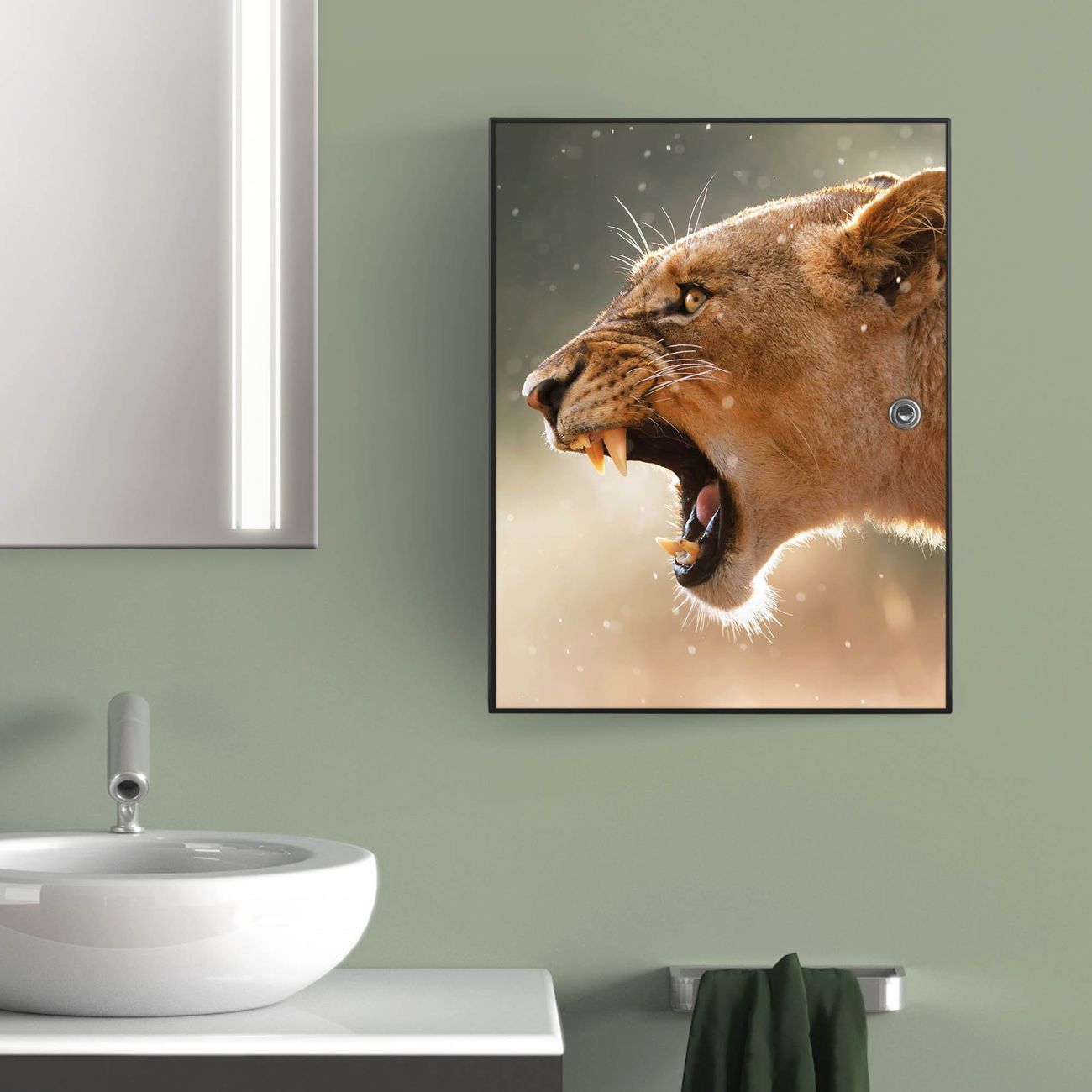 Medizinschrank Stahl Motiv Löwin