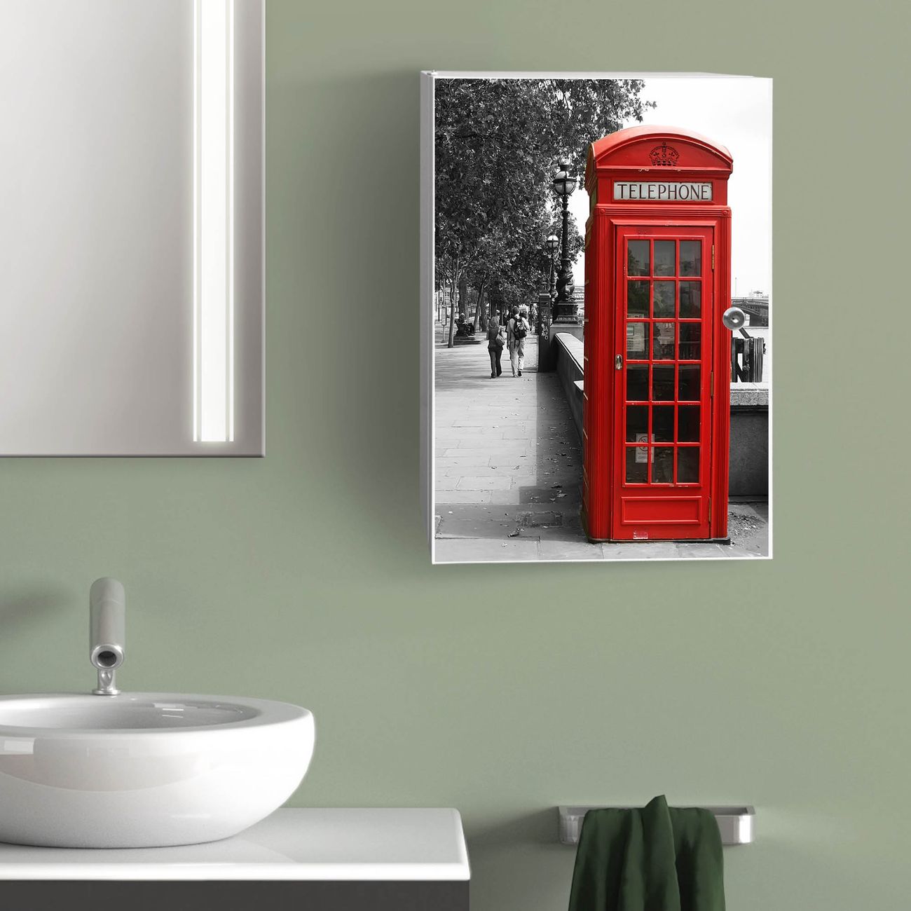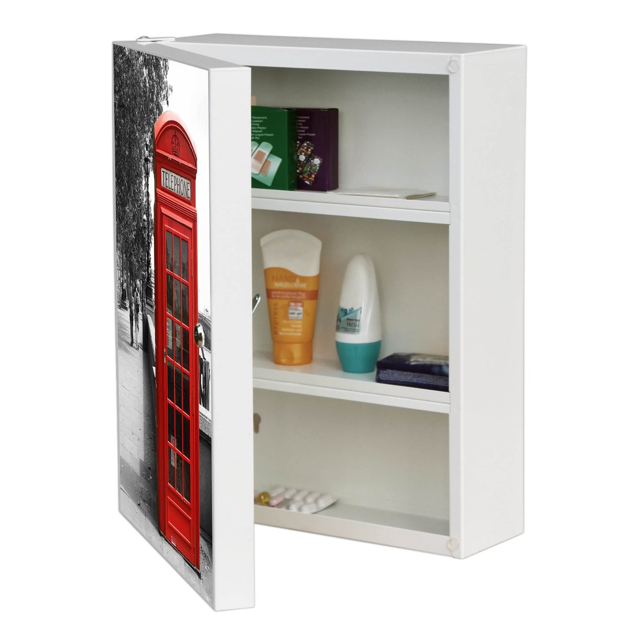 Medizinschrank Stahl Motiv London Red Telephone