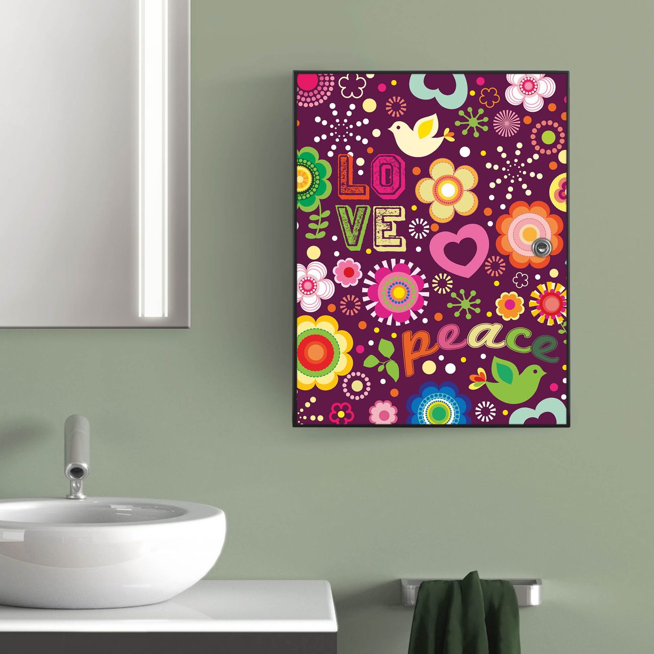 Medizinschrank Stahl Motiv Love and Peace