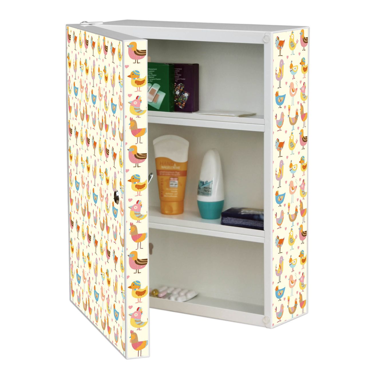 Medizinschrank Stahl Motiv Lustige Vögel
