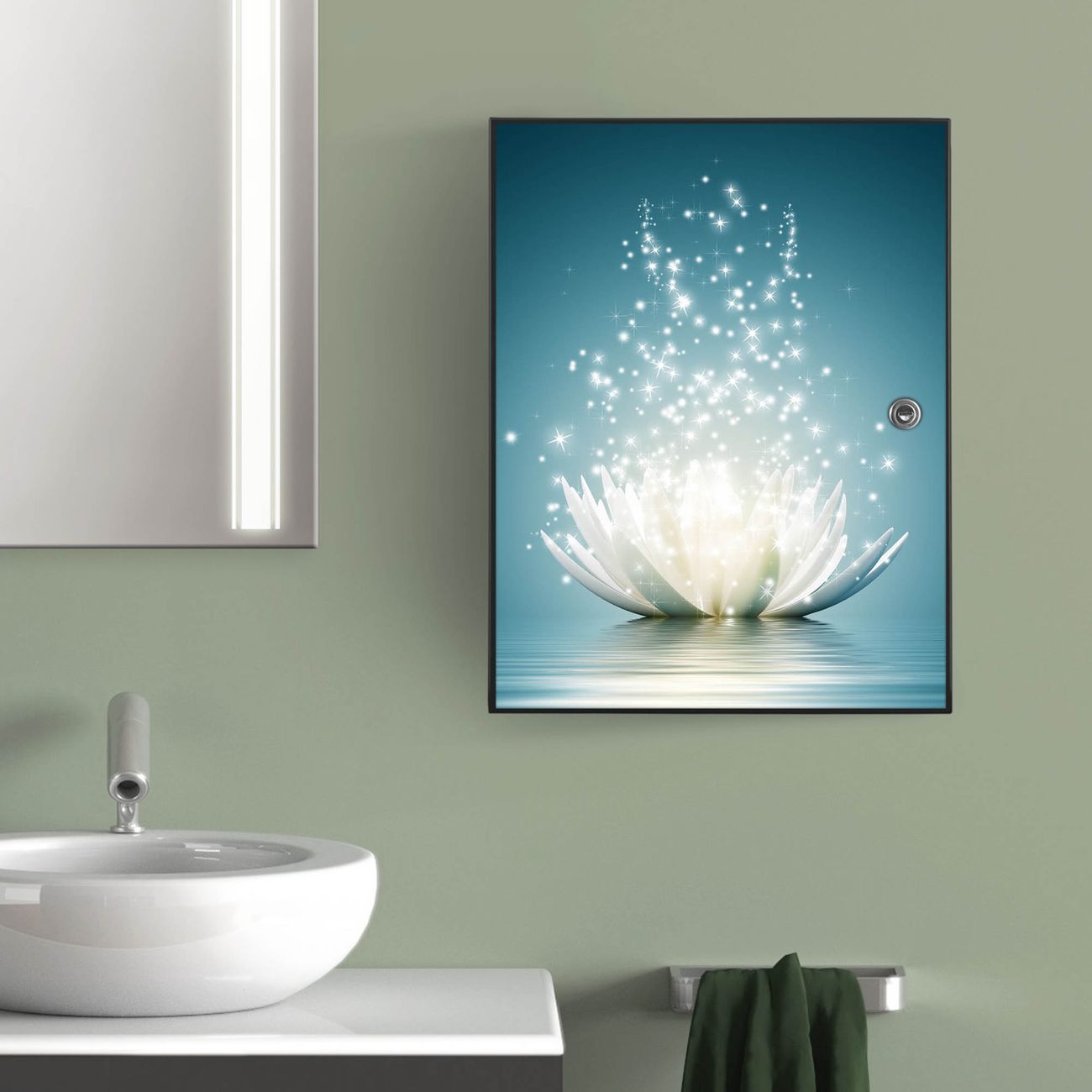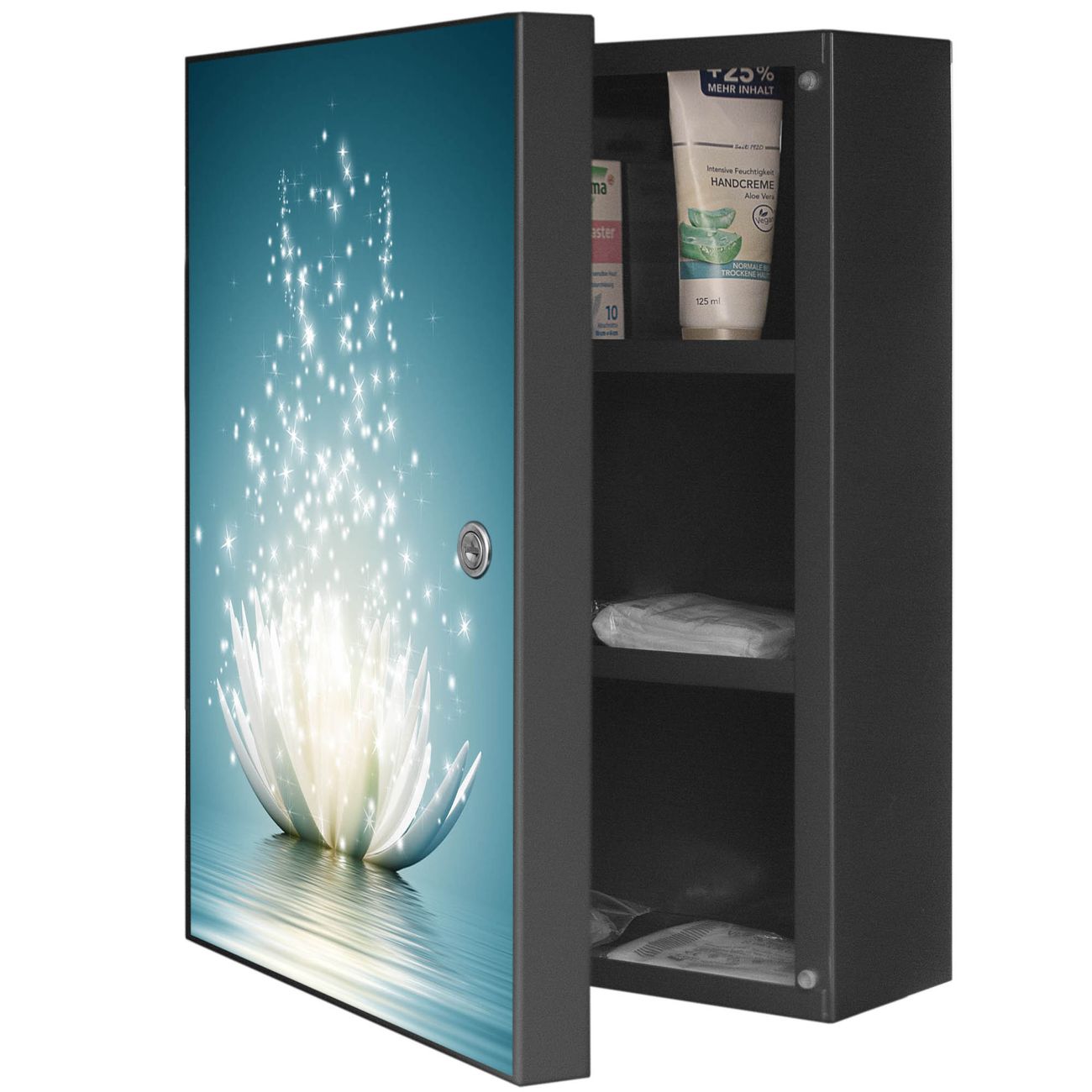 Medizinschrank Stahl Motiv Magische Lotusblüte