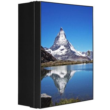 Der Medizinschrank ist gesamt 35x46x15cm groß und wiegt ca. 3900g. Der Türanschlag ist links und kann nicht verändert werden, die Fronttür öffnet ca. 115°. Die Folierung befindet sich auf der Front. Das Gehäuse ist zeitlos anthrazit und aus Stahl gefertigt. Die innenliegenden Fächer haben verschiedene Größen für unterschiedliche Aufbewahrungsmöglichkeiten, in der Innentür können ebenfalls Dinge abgelegt werden. Befestigt wird der Medizinschrank an 4 Stellen auf der Rückseite, Sie erhalten 3 Schlüssel.