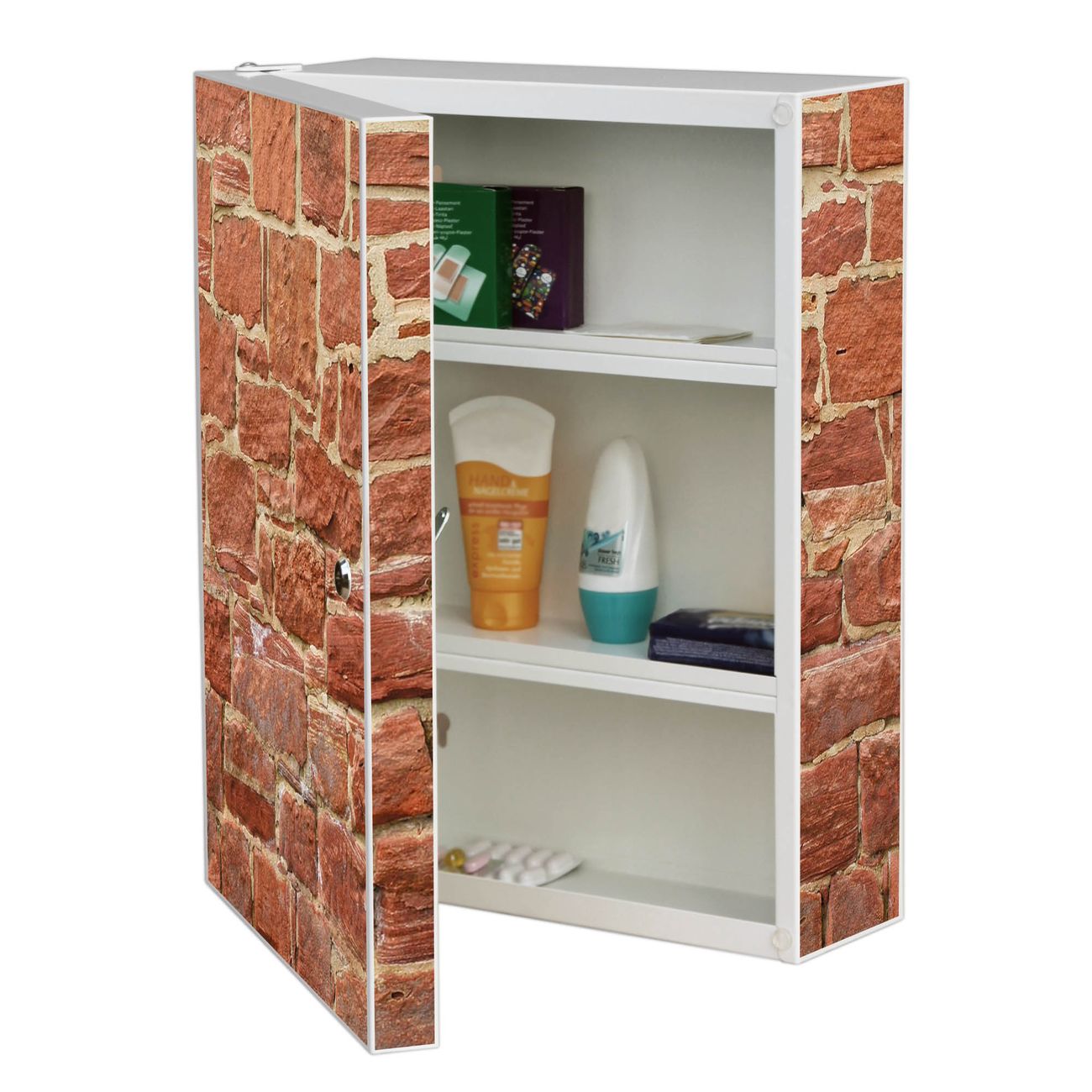 Medizinschrank Stahl Motiv Mauerwerk