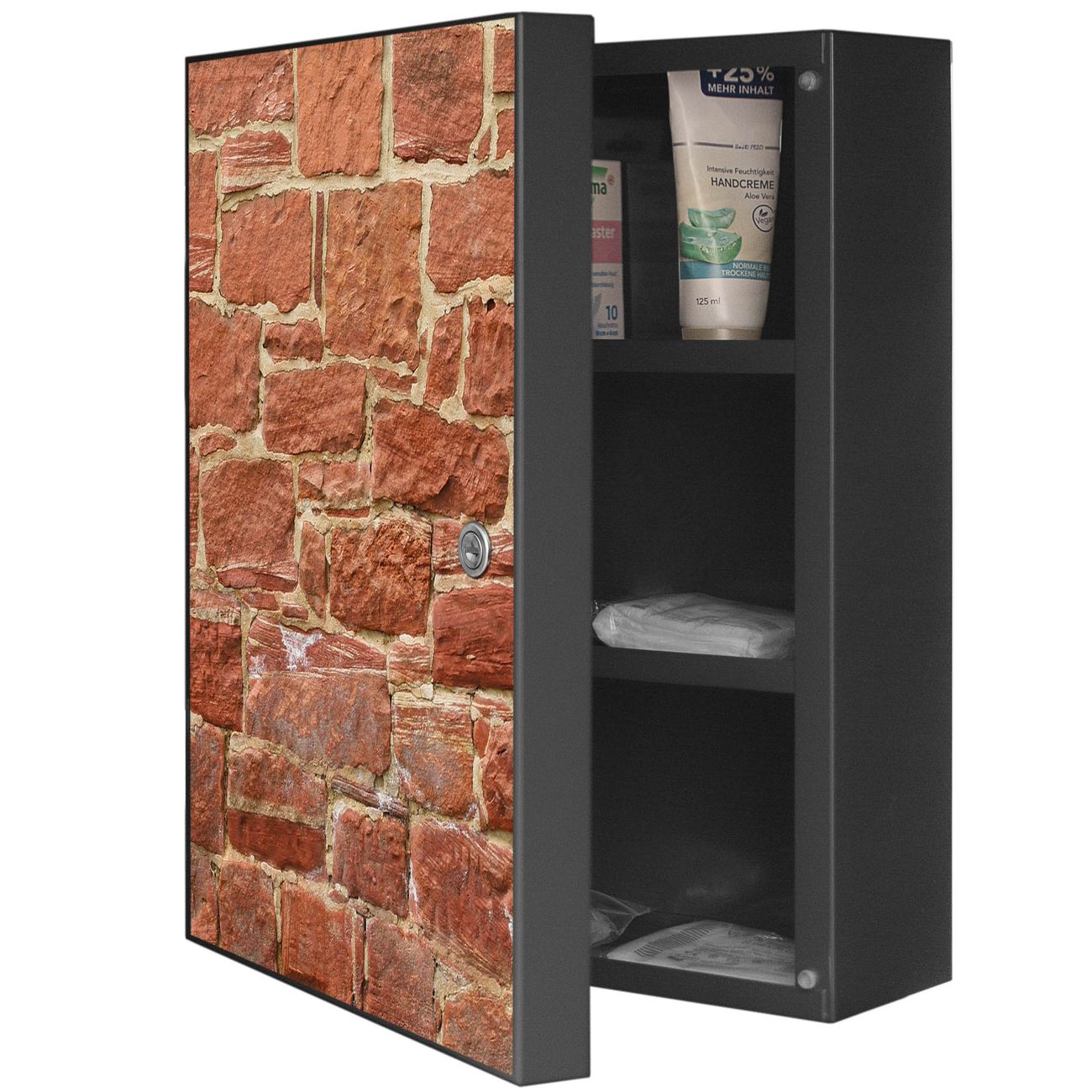 Der Medizinschrank ist gesamt 35x46x15cm groß und wiegt ca. 3900g. Der Türanschlag ist links und kann nicht verändert werden, die Fronttür öffnet ca. 115°. Die Folierung befindet sich auf der Front. Das Gehäuse ist zeitlos anthrazit und aus Stahl gefertigt. Die innenliegenden Fächer haben verschiedene Größen für unterschiedliche Aufbewahrungsmöglichkeiten, in der Innentür können ebenfalls Dinge abgelegt werden. Befestigt wird der Medizinschrank an 4 Stellen auf der Rückseite, Sie erhalten 3 Schlüssel.
