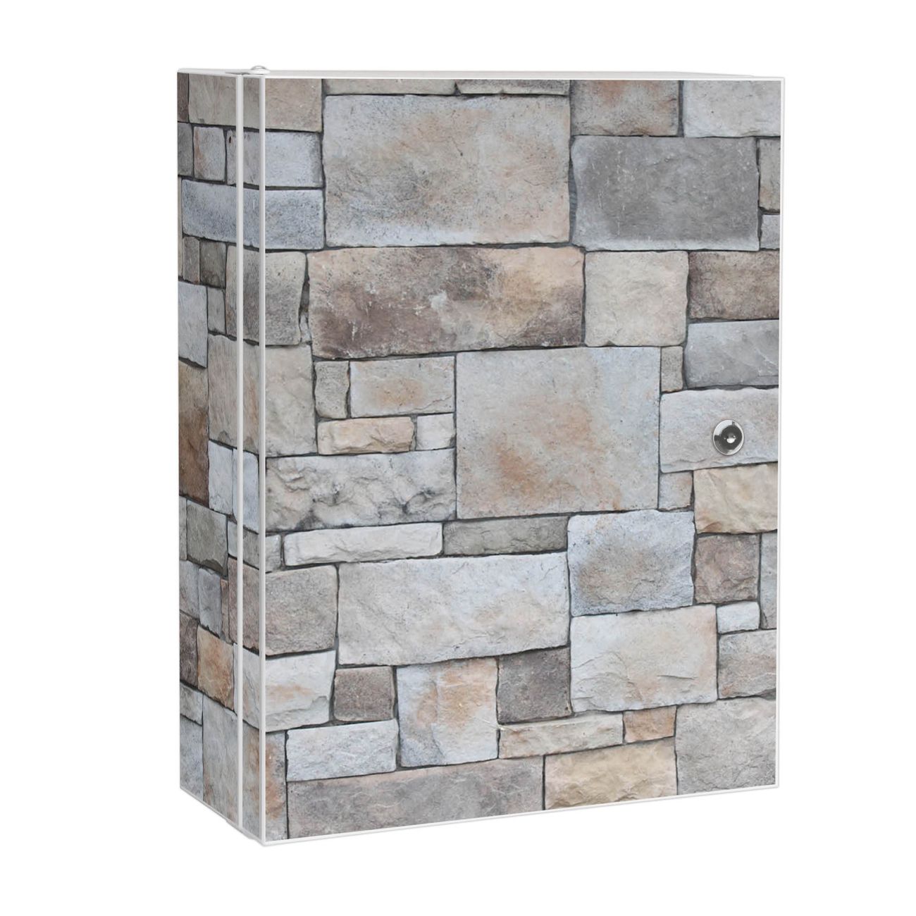 Medizinschrank Stahl Motiv Natursteinmauer