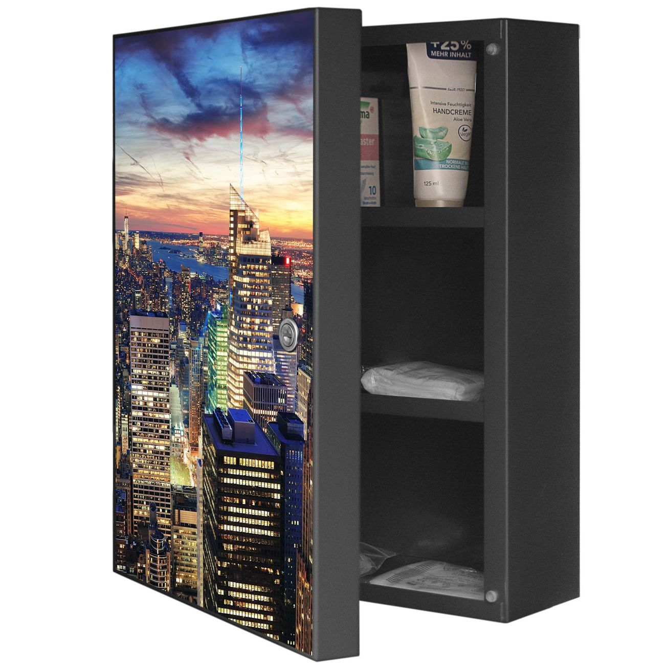 Medizinschrank Stahl Motiv New York Sunset