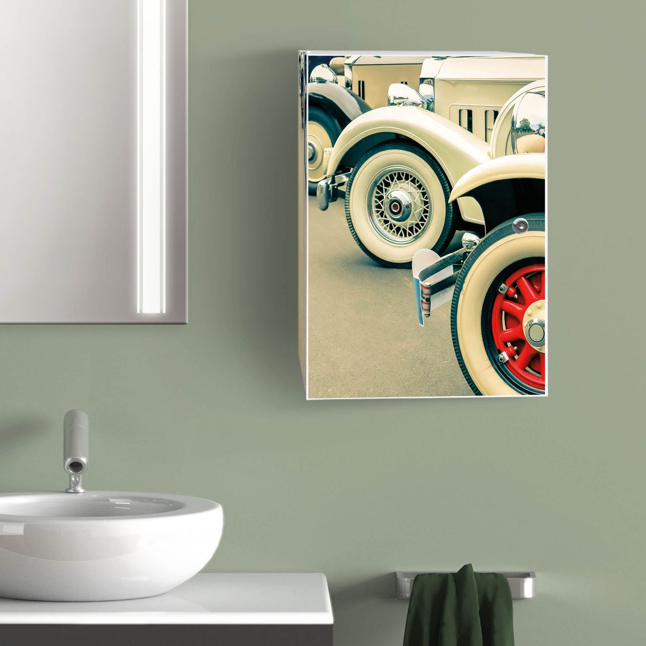 Medizinschrank Stahl Motiv Oldtimer Räder