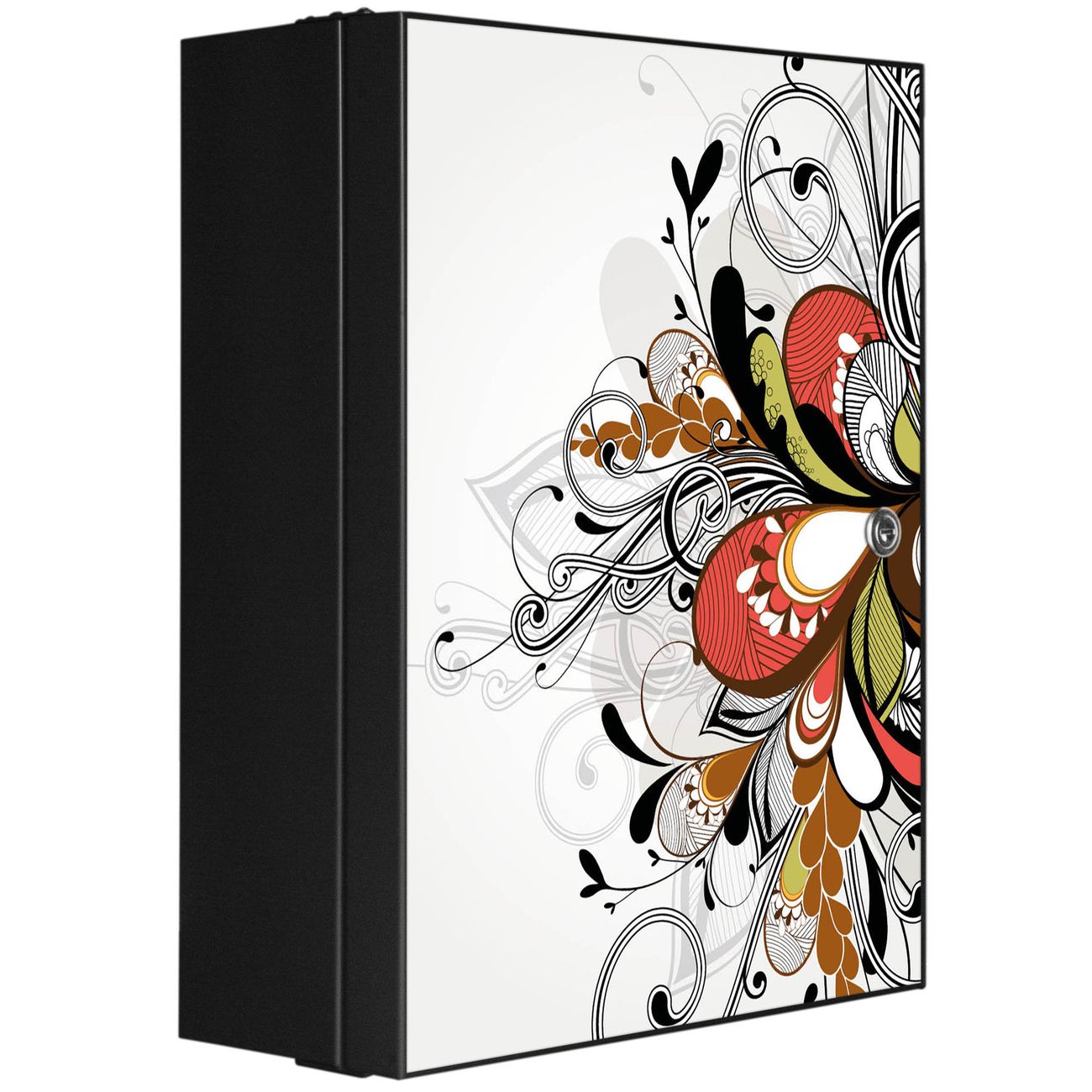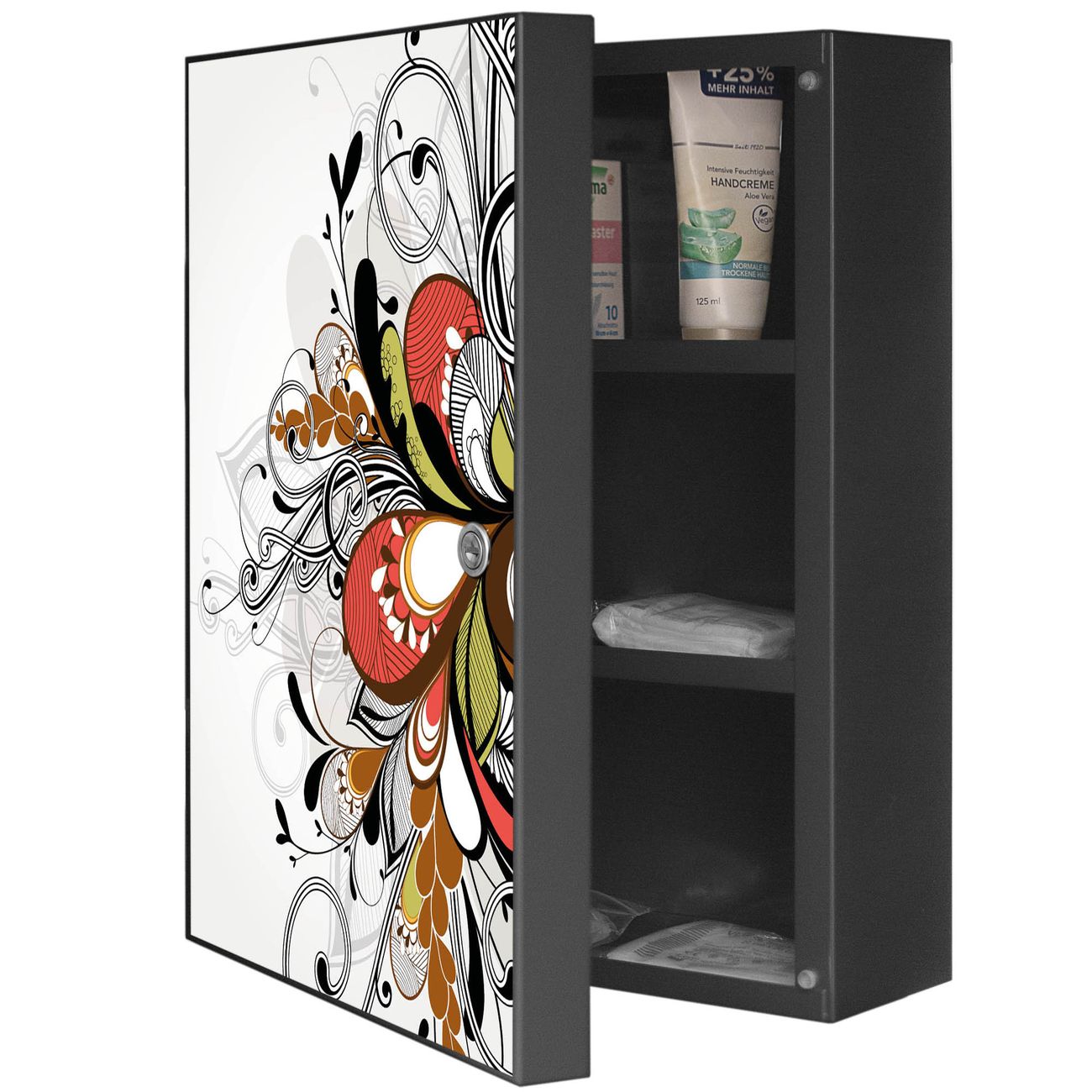 Der Medizinschrank ist gesamt 35x46x15cm groß und wiegt ca. 3900g. Der Türanschlag ist links und kann nicht verändert werden, die Fronttür öffnet ca. 115°. Die Folierung befindet sich auf der Front. Das Gehäuse ist zeitlos anthrazit und aus Stahl gefertigt. Die innenliegenden Fächer haben verschiedene Größen für unterschiedliche Aufbewahrungsmöglichkeiten, in der Innentür können ebenfalls Dinge abgelegt werden. Befestigt wird der Medizinschrank an 4 Stellen auf der Rückseite, Sie erhalten 3 Schlüssel.