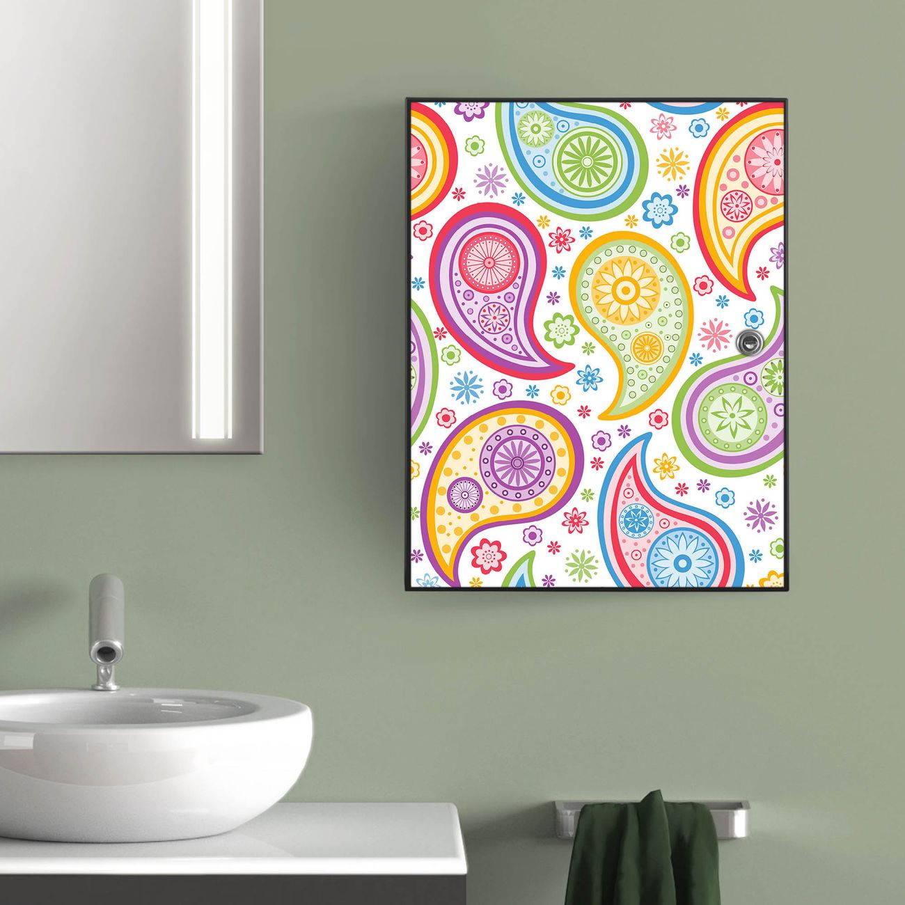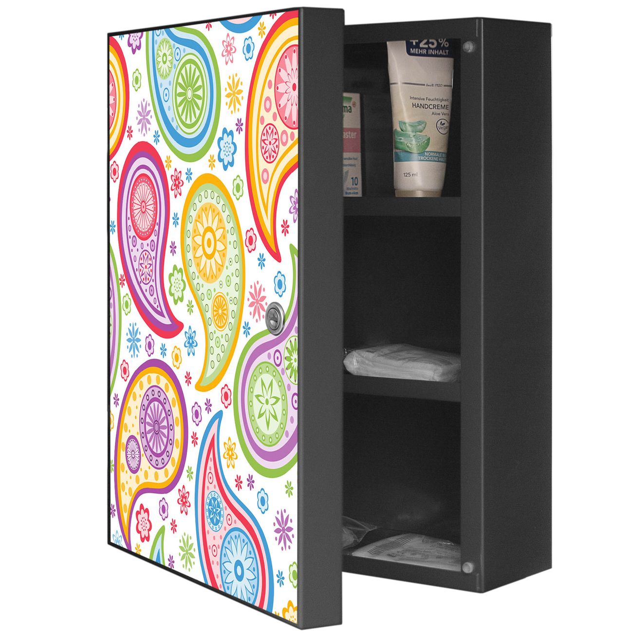 Medizinschrank Stahl Motiv Paisley bunt