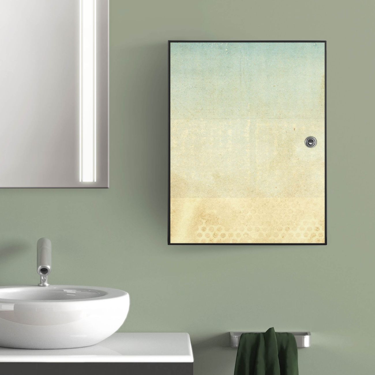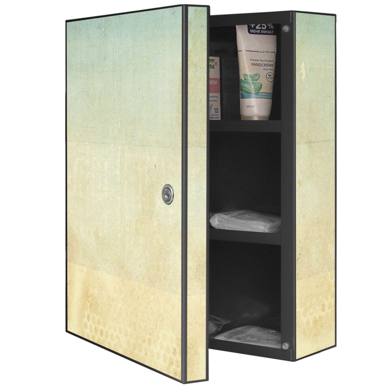 Medizinschrank Stahl Motiv Patina Papier