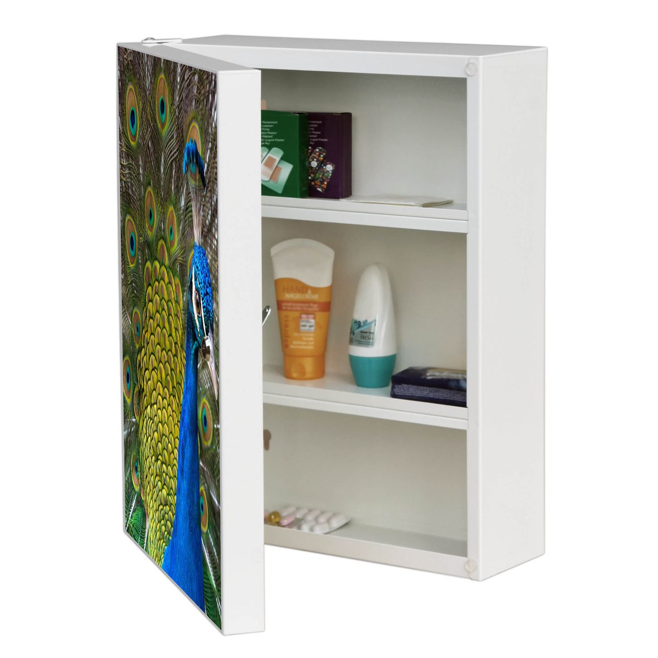 Der Medizinschrank ist gesamt 35x46x15cm groß und wiegt ca. 3900g. Der Türanschlag ist links und kann nicht verändert werden, die Fronttür öffnet ca. 115°. Die Folierung befindet sich auf der Front. Das Gehäuse ist zeitlos weiß und aus Stahl gefertigt. Die innenliegenden Fächer haben verschiedene Größen für unterschiedliche Aufbewahrungsmöglichkeiten, in der Innentür können ebenfalls Dinge abgelegt werden. Befestigt wird der Medizinschrank an 4 Stellen auf der Rückseite, Sie erhalten 3 Schlüssel.