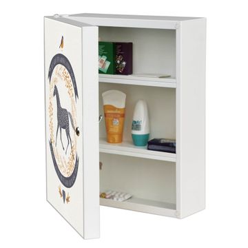 Medizinschrank Stahl Motiv Pferd und Vogel