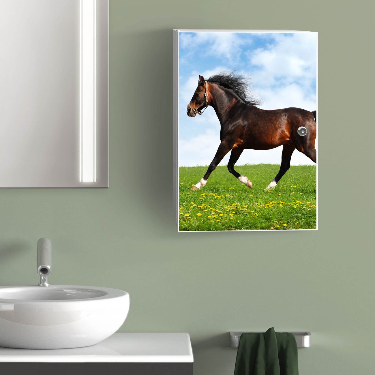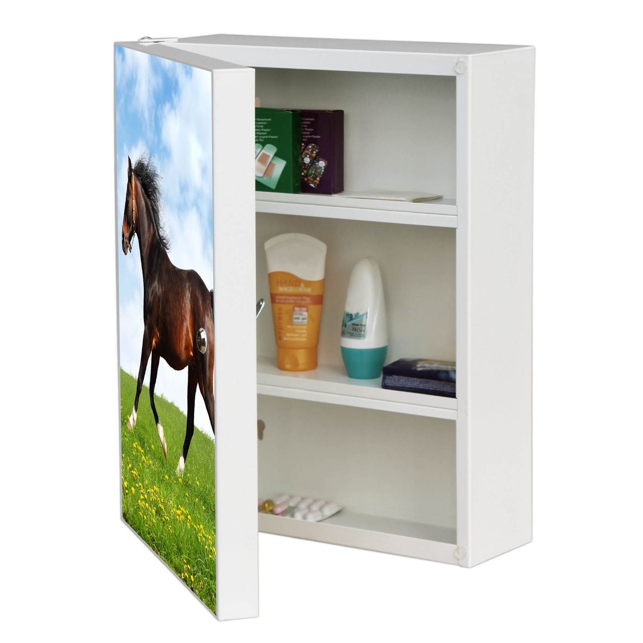 Medizinschrank Stahl Motiv Pferd