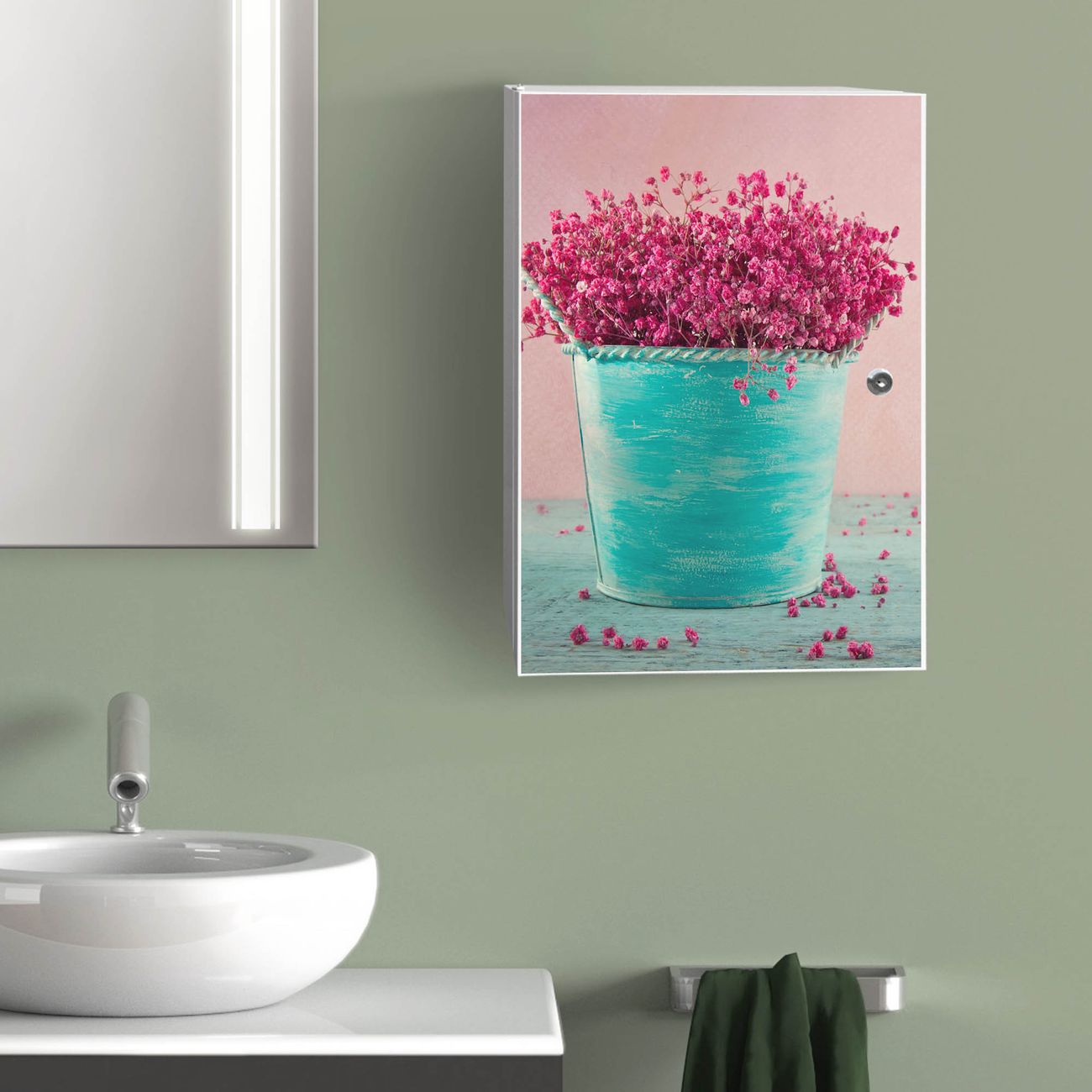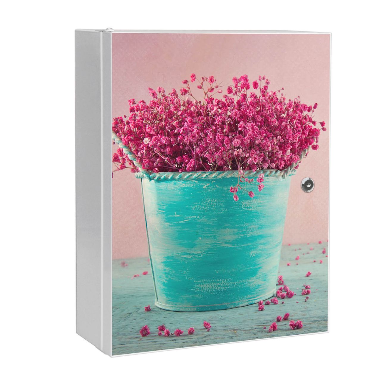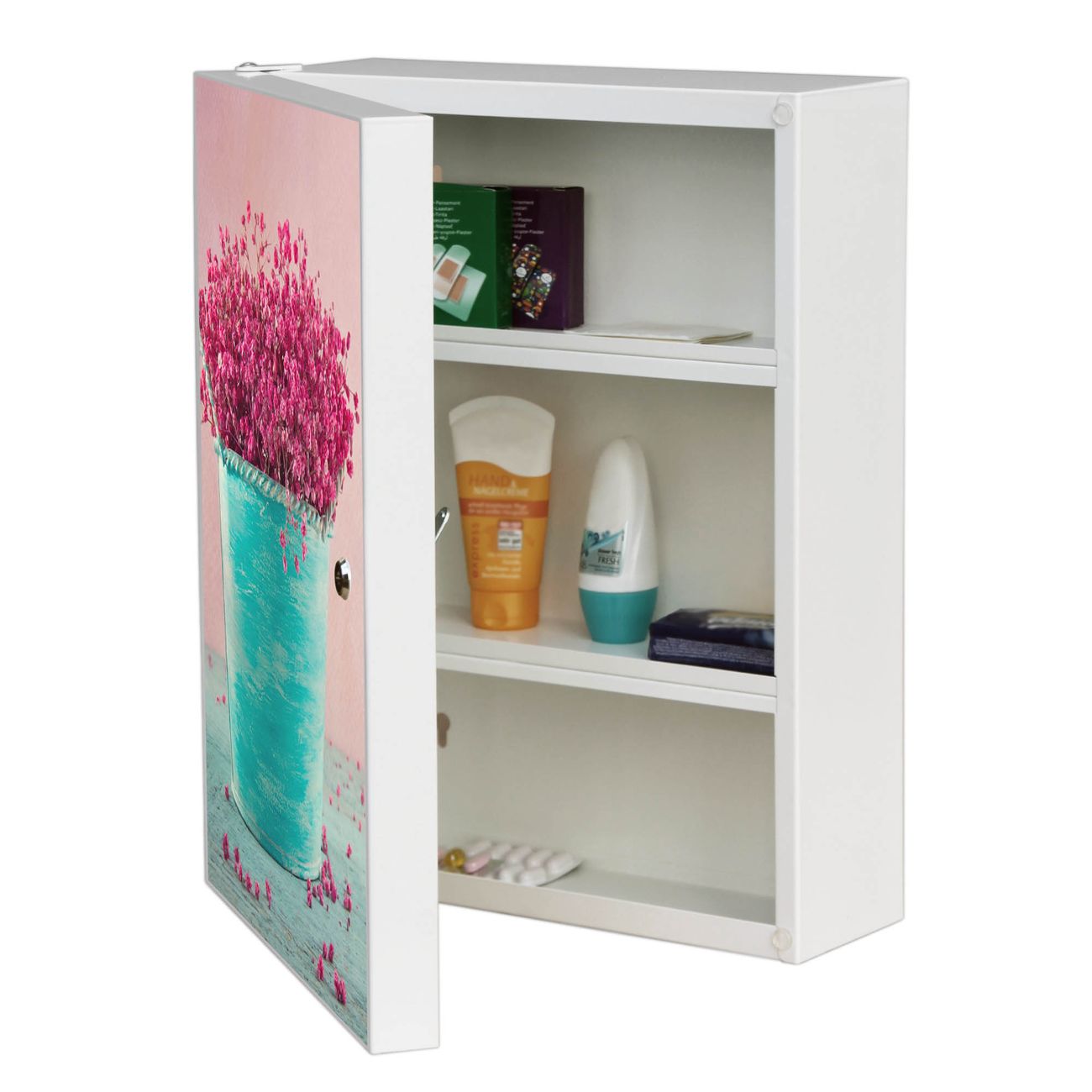 Medizinschrank Stahl Motiv Pinke Trockenblumen