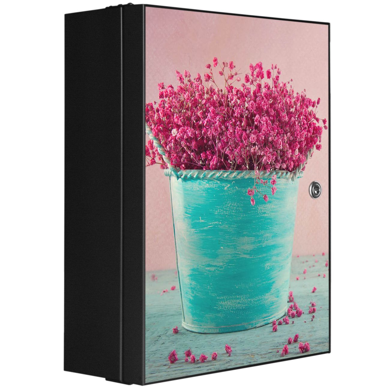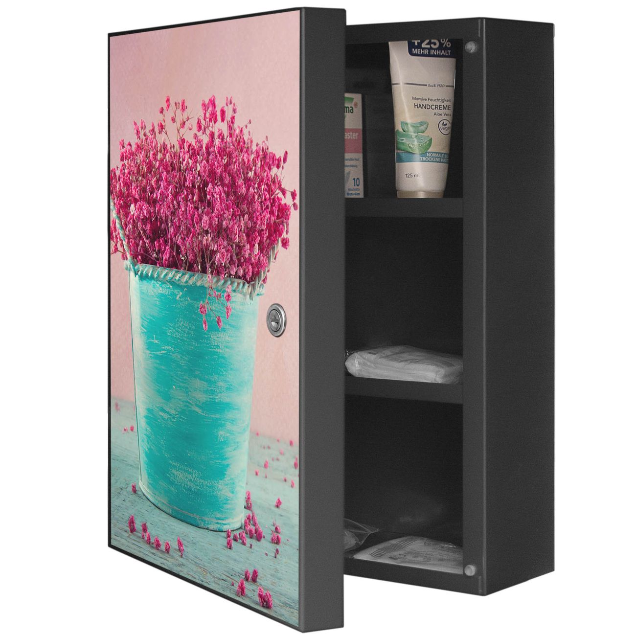 Medizinschrank Stahl Motiv Pinke Trockenblumen