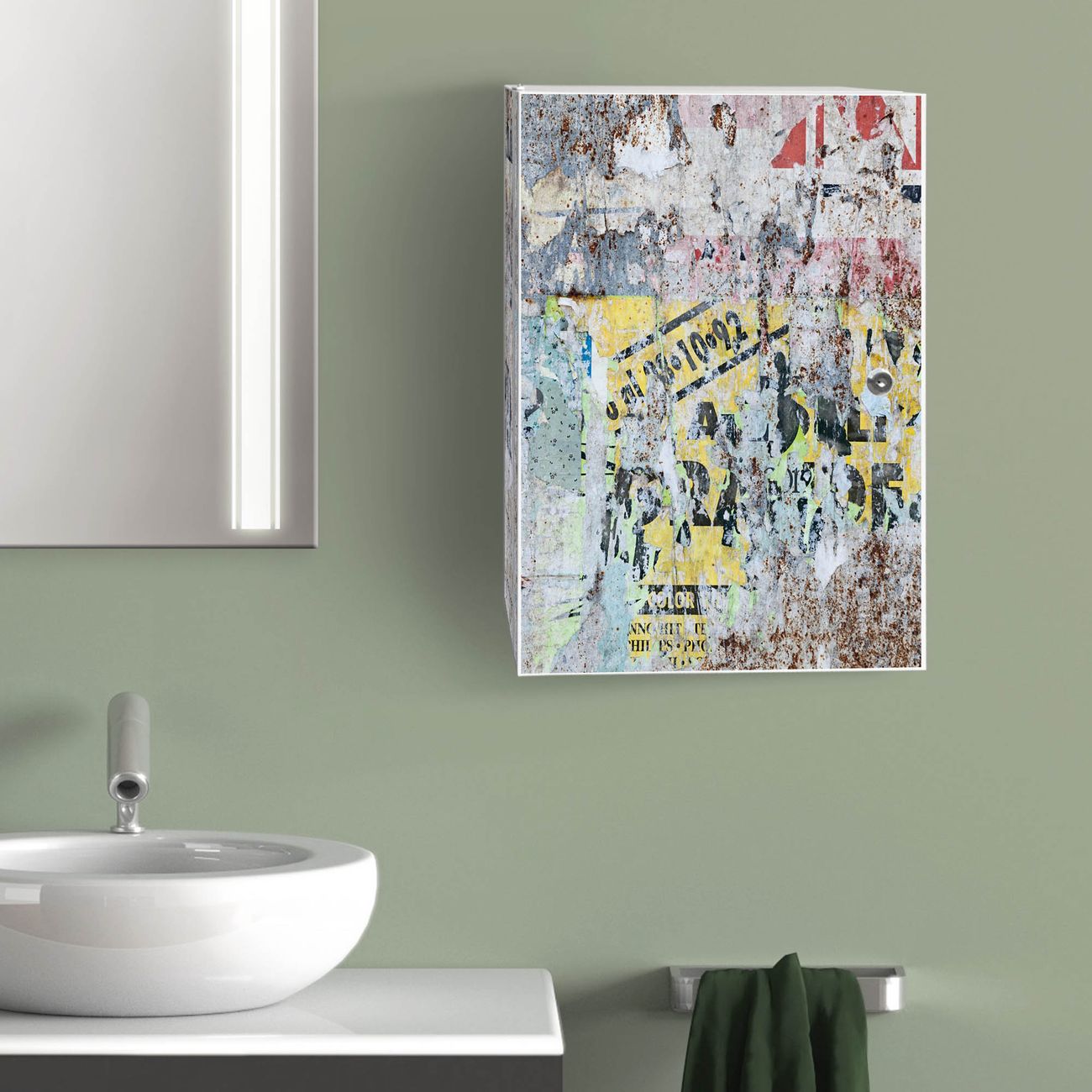 Medizinschrank Stahl Motiv Posterwand
