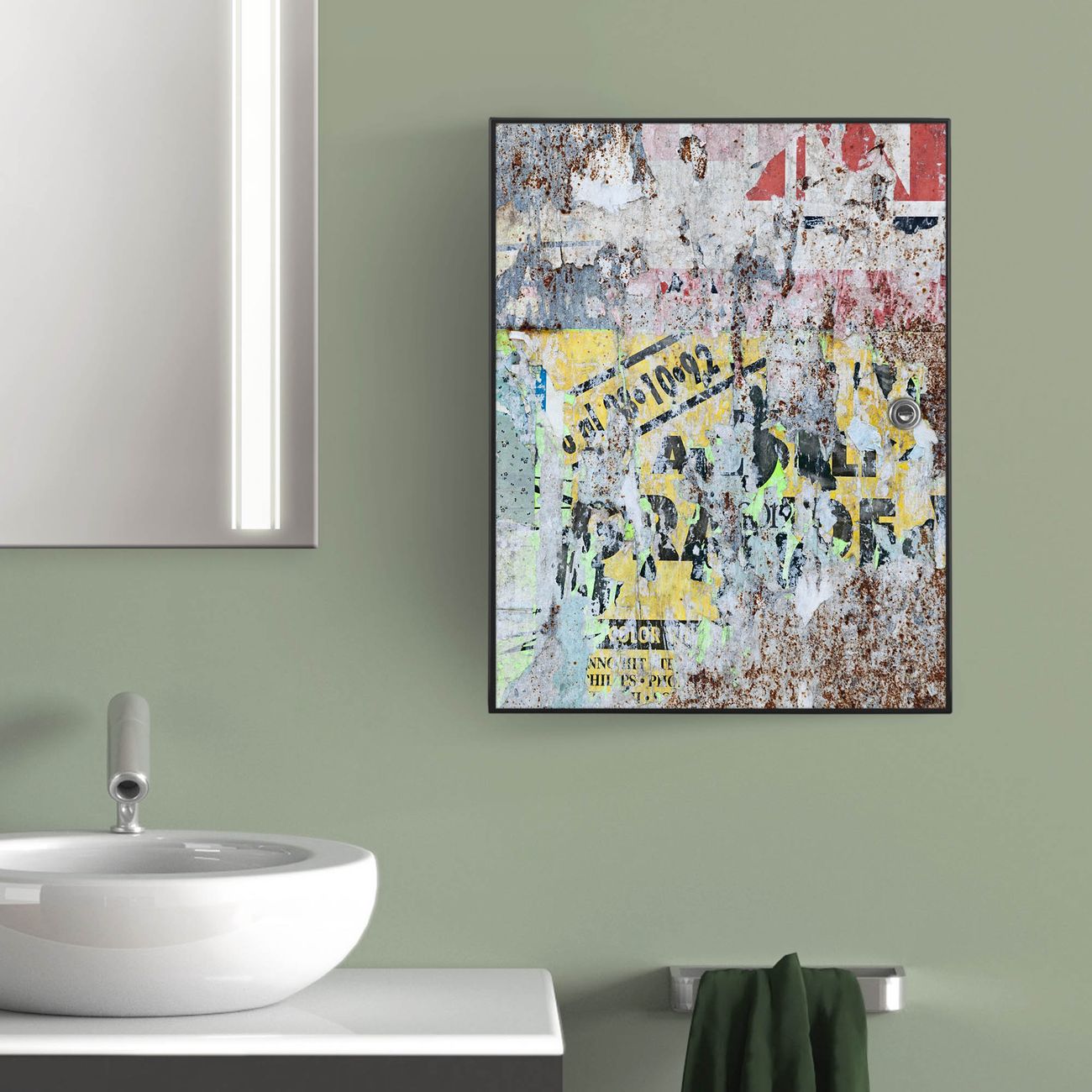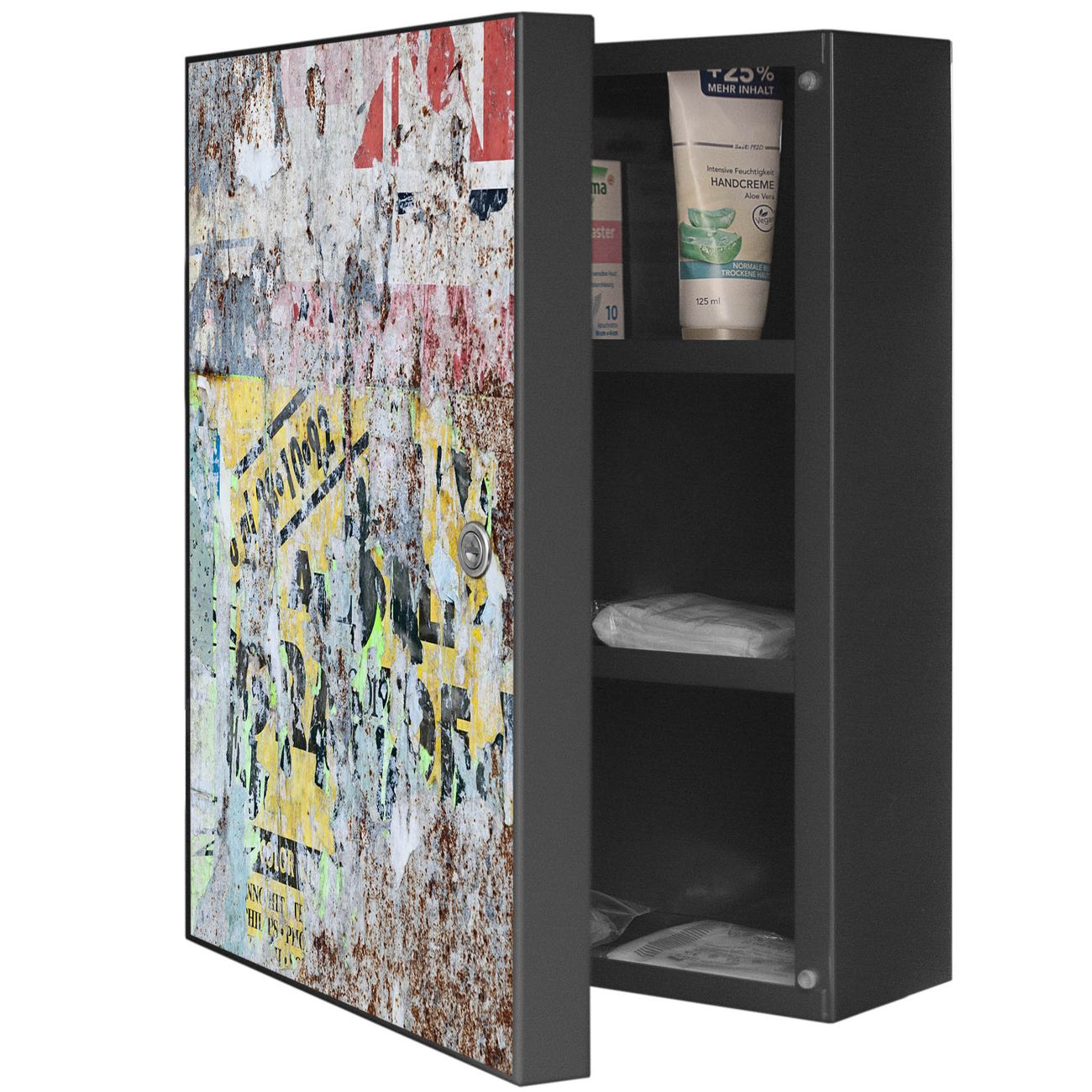 Medizinschrank Stahl Motiv Posterwand