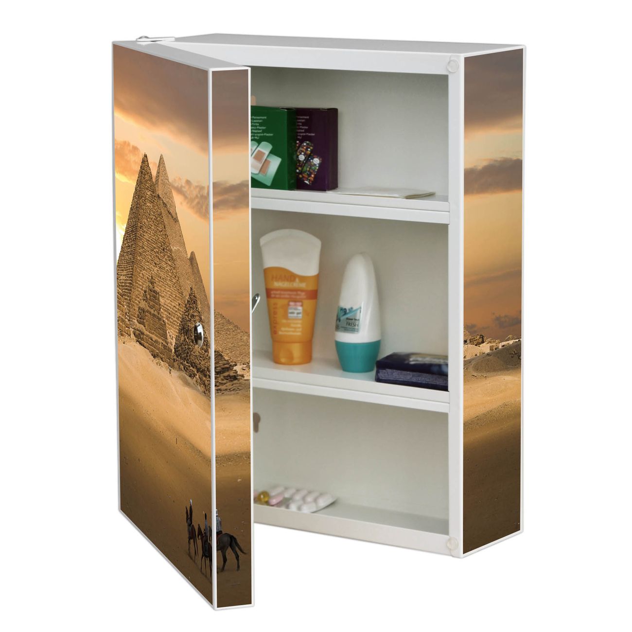 Medizinschrank Stahl Motiv Pyramiden