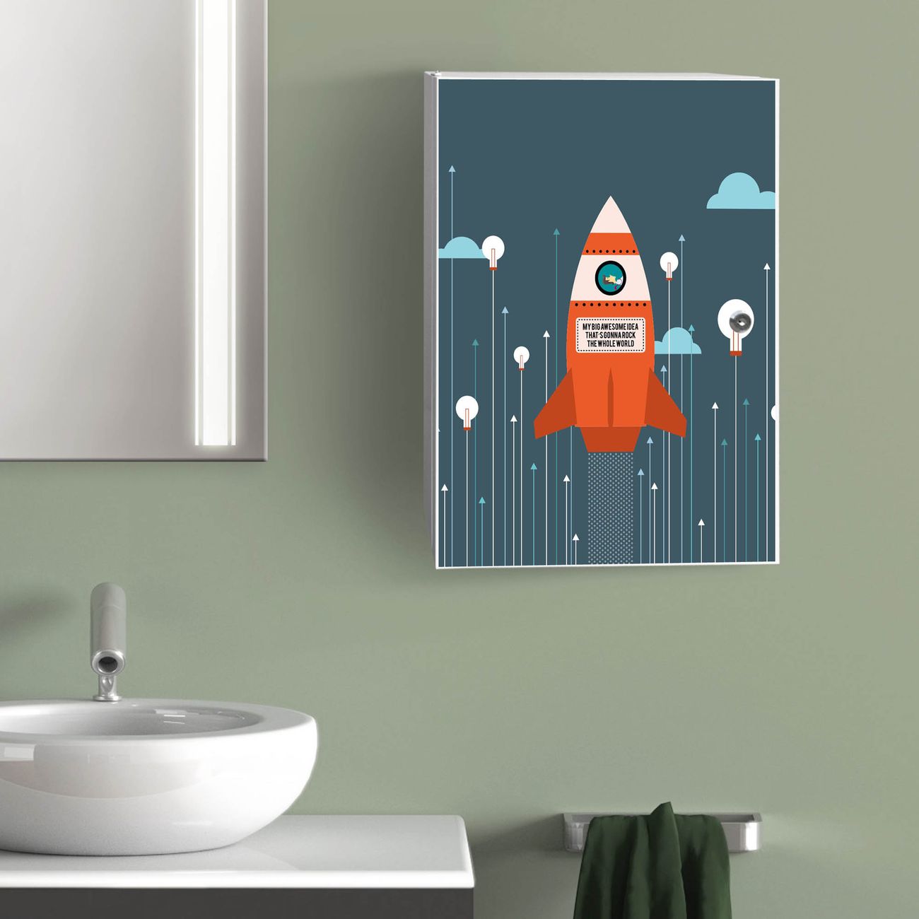 Medizinschrank Stahl Motiv Rock the World