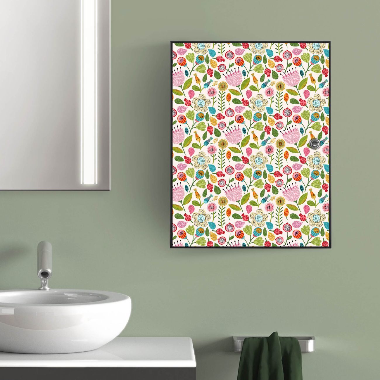 Medizinschrank Stahl Motiv Rosa Kelch Hell