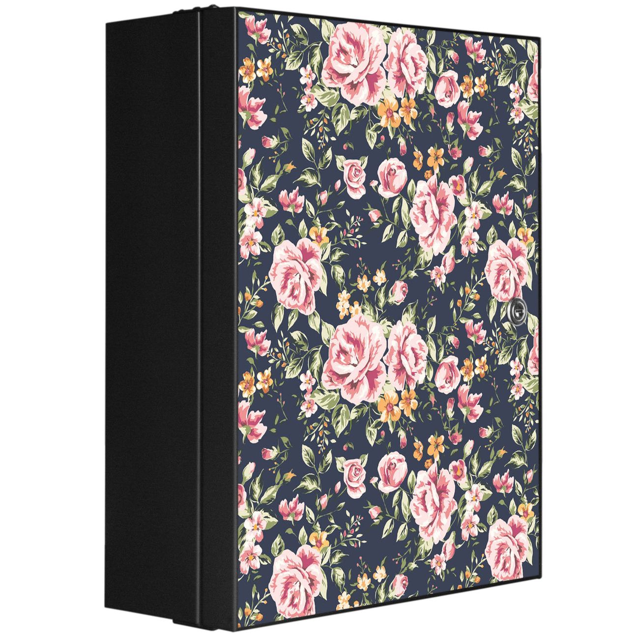 Medizinschrank Stahl Motiv Rosen Auf Anthrazit