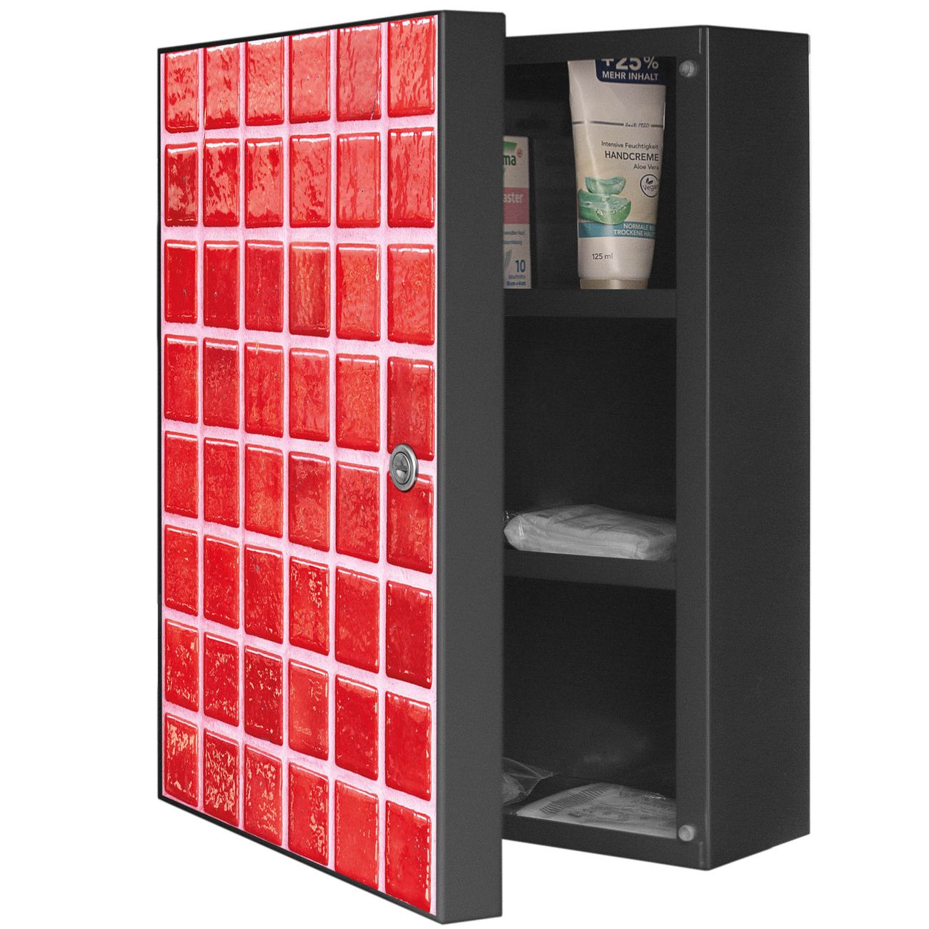 Der Medizinschrank ist gesamt 35x46x15cm groß und wiegt ca. 3900g. Der Türanschlag ist links und kann nicht verändert werden, die Fronttür öffnet ca. 115°. Die Folierung befindet sich auf der Front. Das Gehäuse ist zeitlos anthrazit und aus Stahl gefertigt. Die innenliegenden Fächer haben verschiedene Größen für unterschiedliche Aufbewahrungsmöglichkeiten, in der Innentür können ebenfalls Dinge abgelegt werden. Befestigt wird der Medizinschrank an 4 Stellen auf der Rückseite, Sie erhalten 3 Schlüssel.