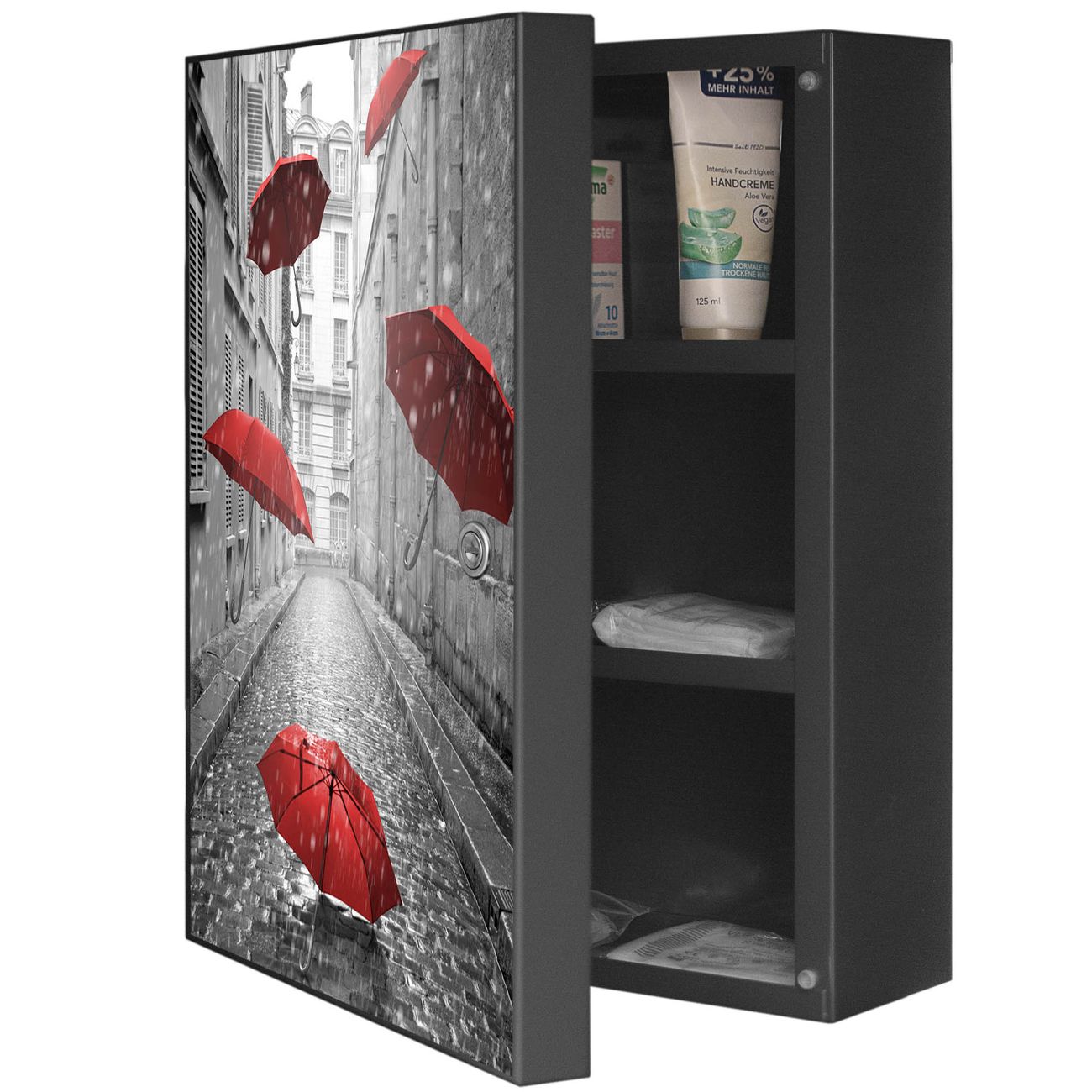 Medizinschrank Stahl Motiv Rote Schirme