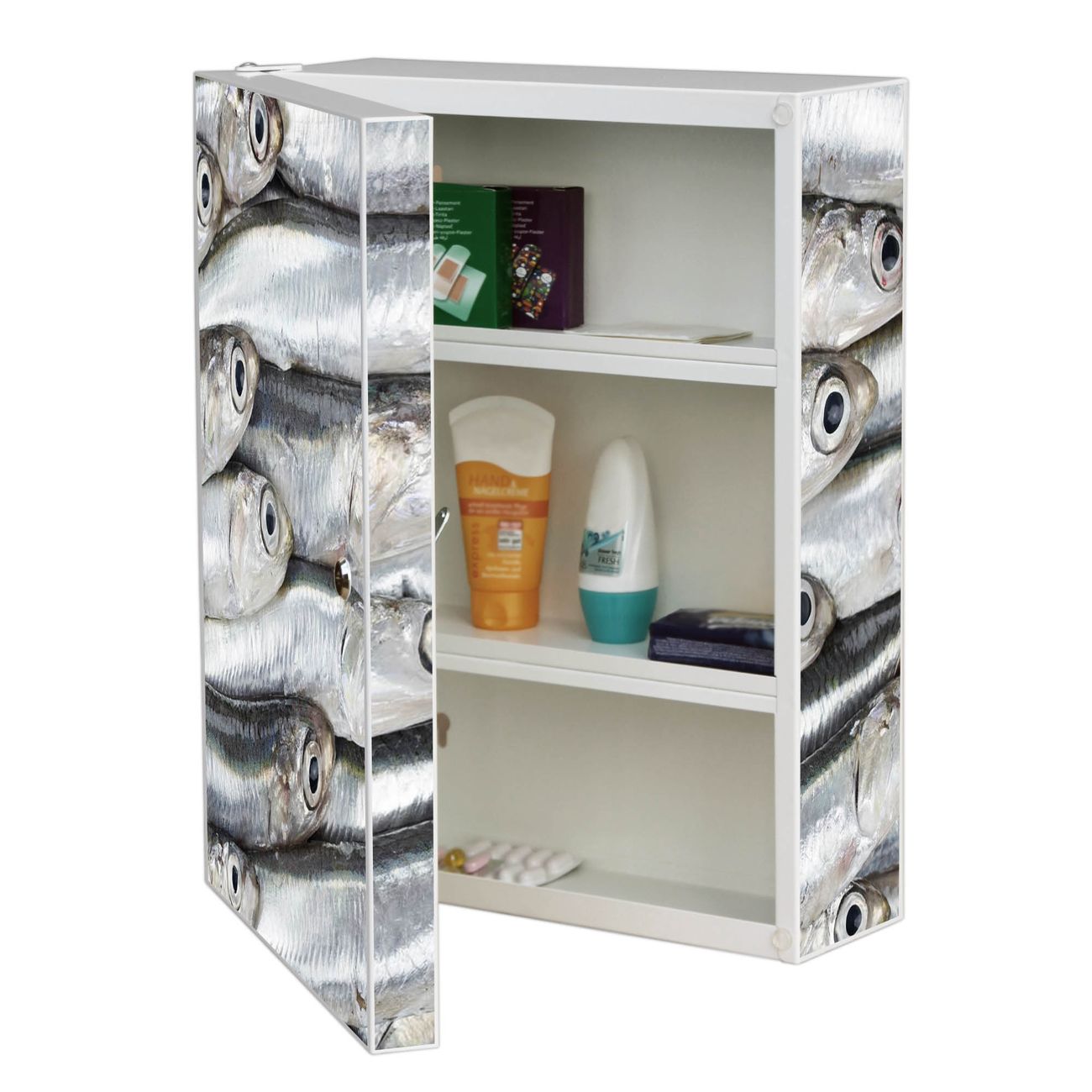 Medizinschrank Stahl Motiv Sardinen