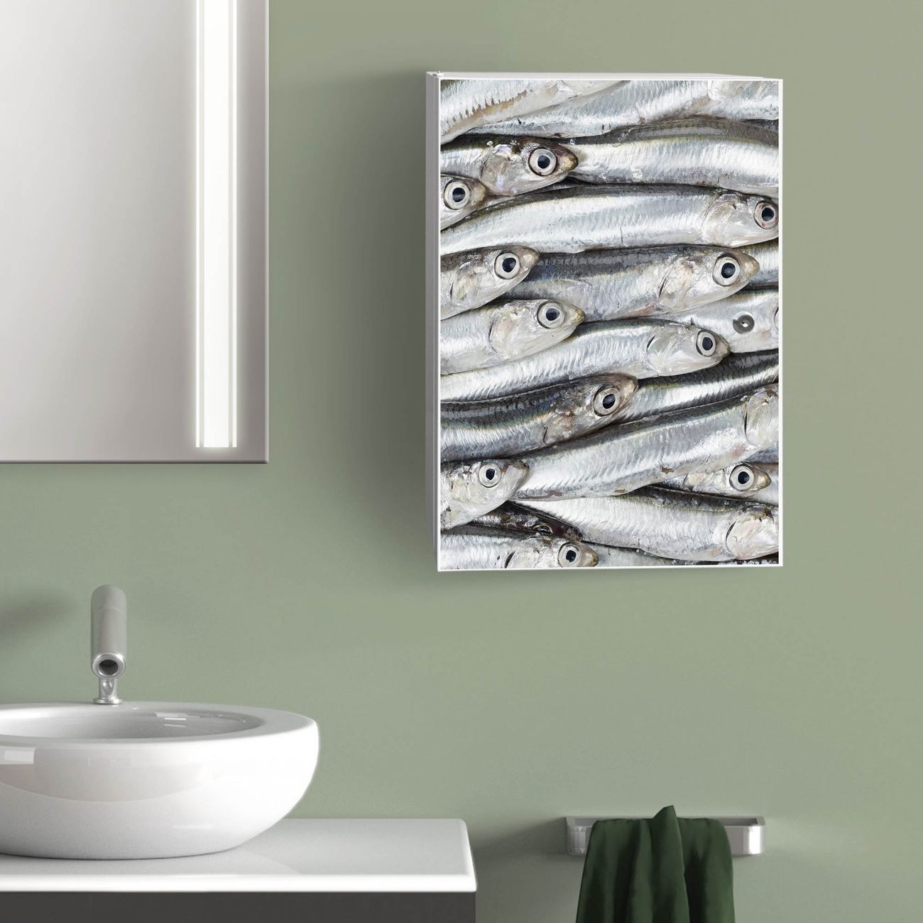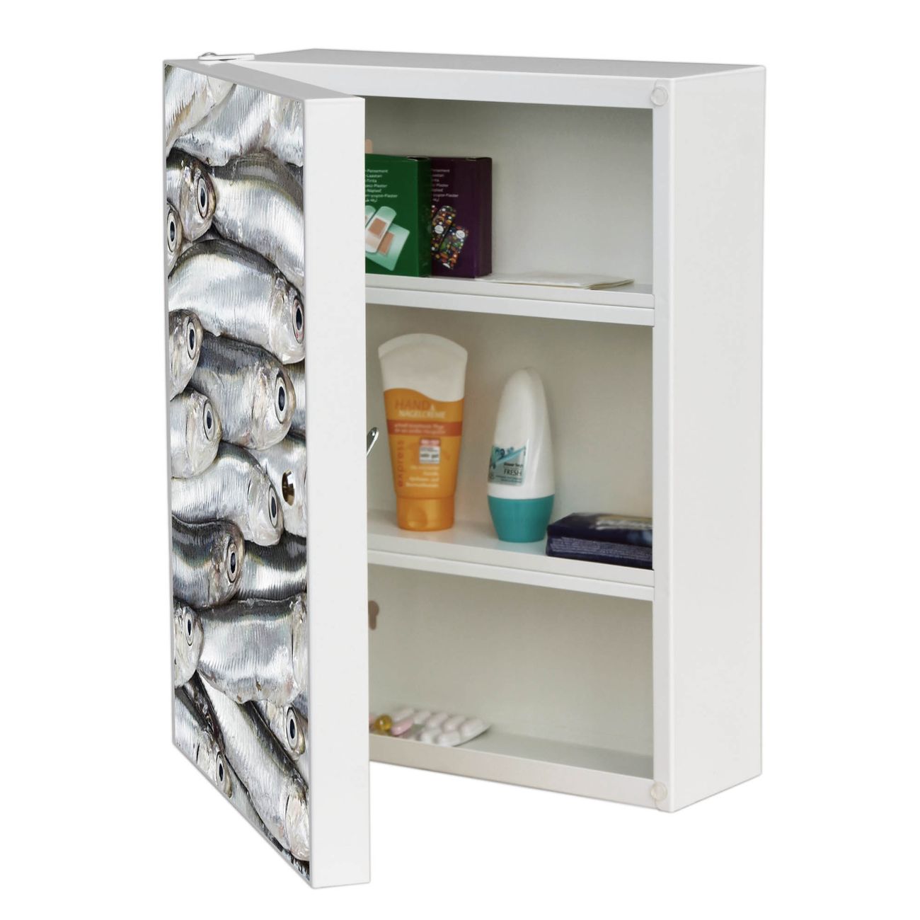 Medizinschrank Stahl Motiv Sardinen